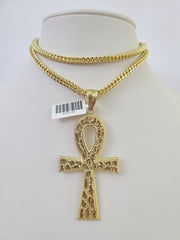 10K Franco Chain Jesus Ankh Cross Pendant Charm Necklace 20"-28" 4mm Gold Yellow - 20" chain with charm