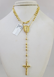 Real 14k Gold Rosary Necklace Jesus Cross Women Diamond Cut Chain 16 INCHES
