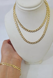 10k Gold Solid Royal Cuban Curb Chain 5mm Necklace Bracelet Set Real