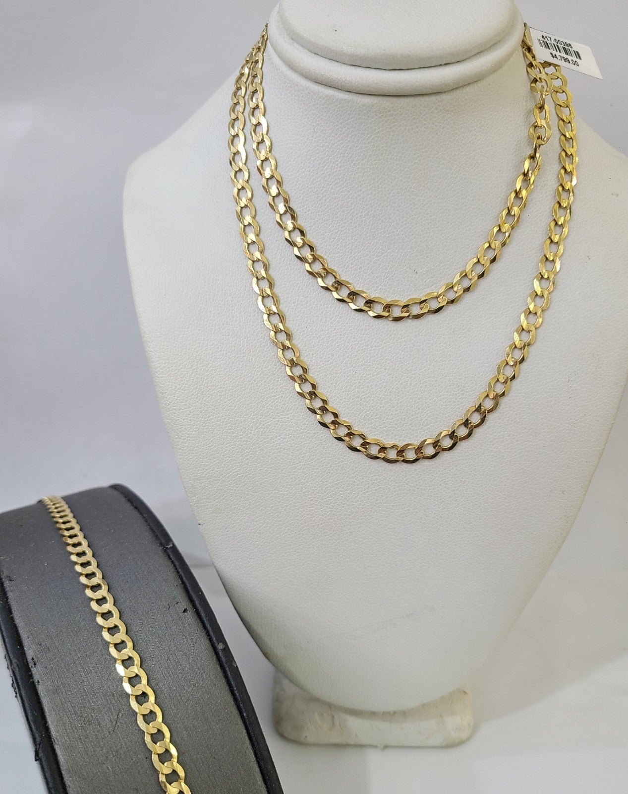 10k Gold Solid Royal Cuban Curb Chain 5mm Necklace Bracelet Set Real - Chain and Bracelet set