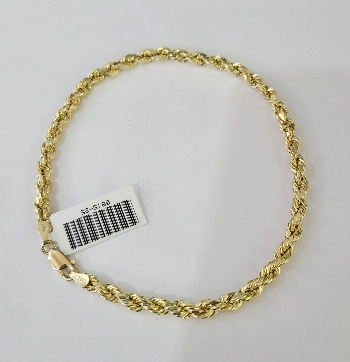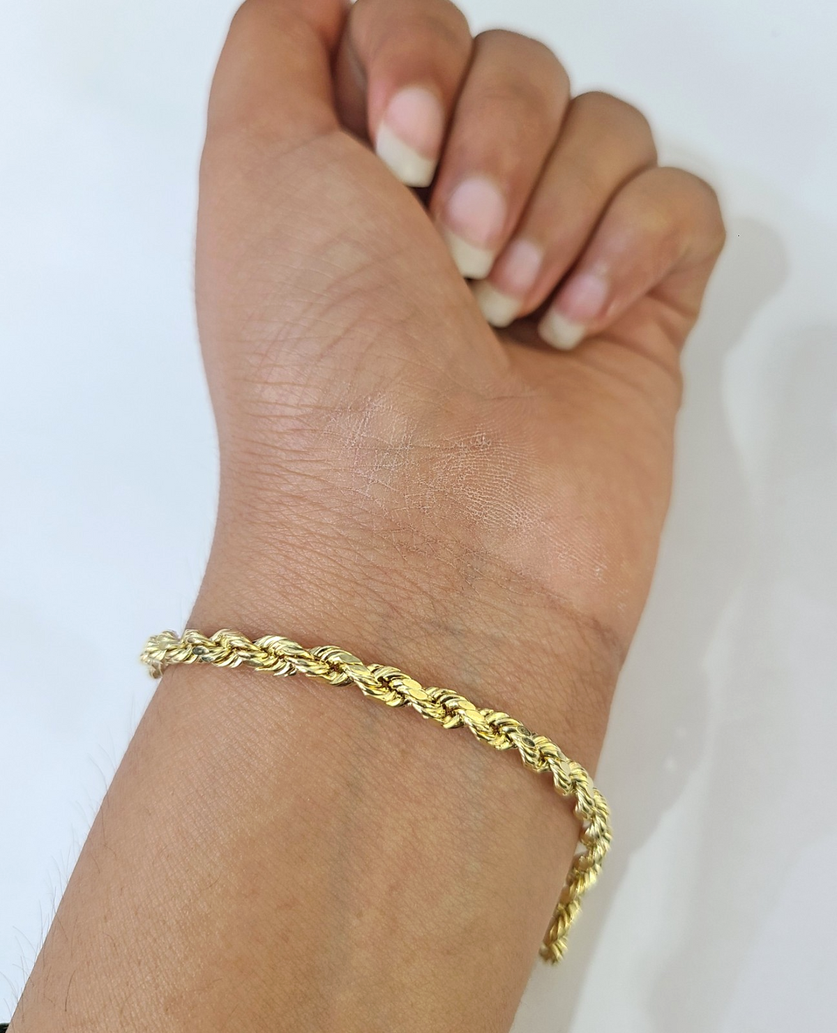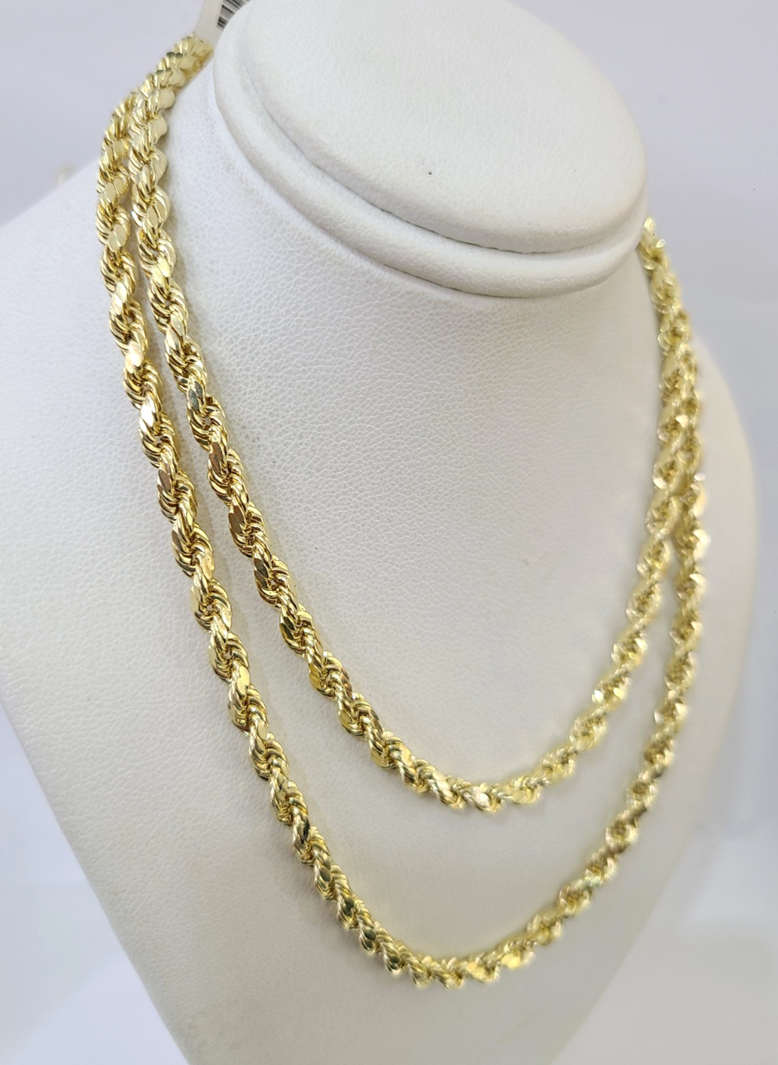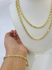 10k Yellow Gold Rope Chain 4mm Necklace Bracelet Set Real Men Women - 7 inches / 20 inches