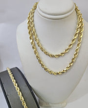 10k Yellow Gold Rope Chain 7mm Necklace Bracelet Set Real Men Women