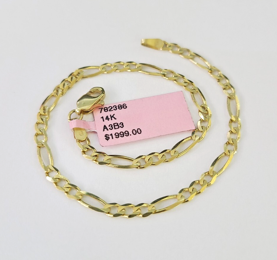 Real 14k Yellow Gold Figaro Bracelet 3mm 7 Inch Lobster Clasp Brand Ne – Goldenlinq index