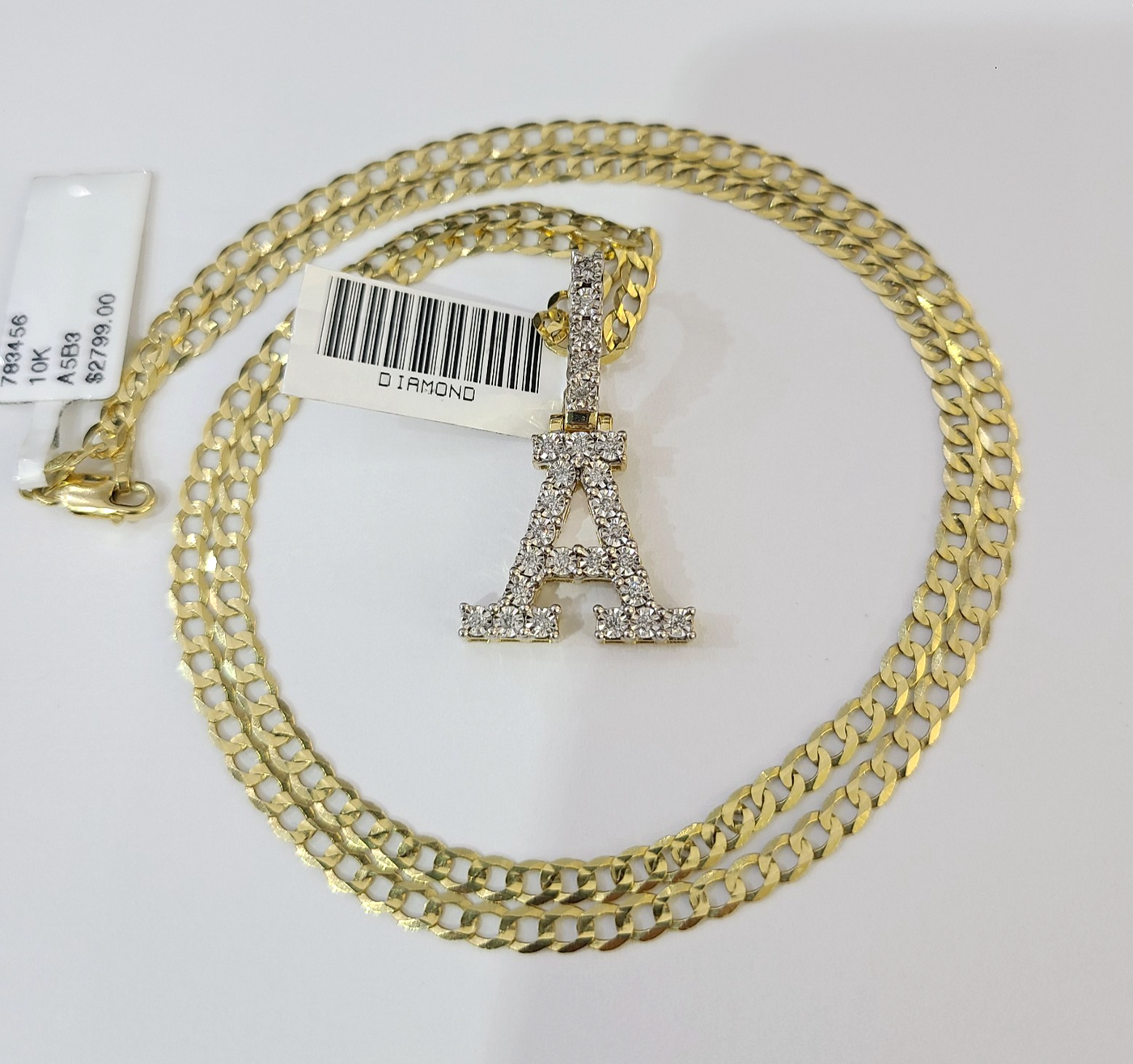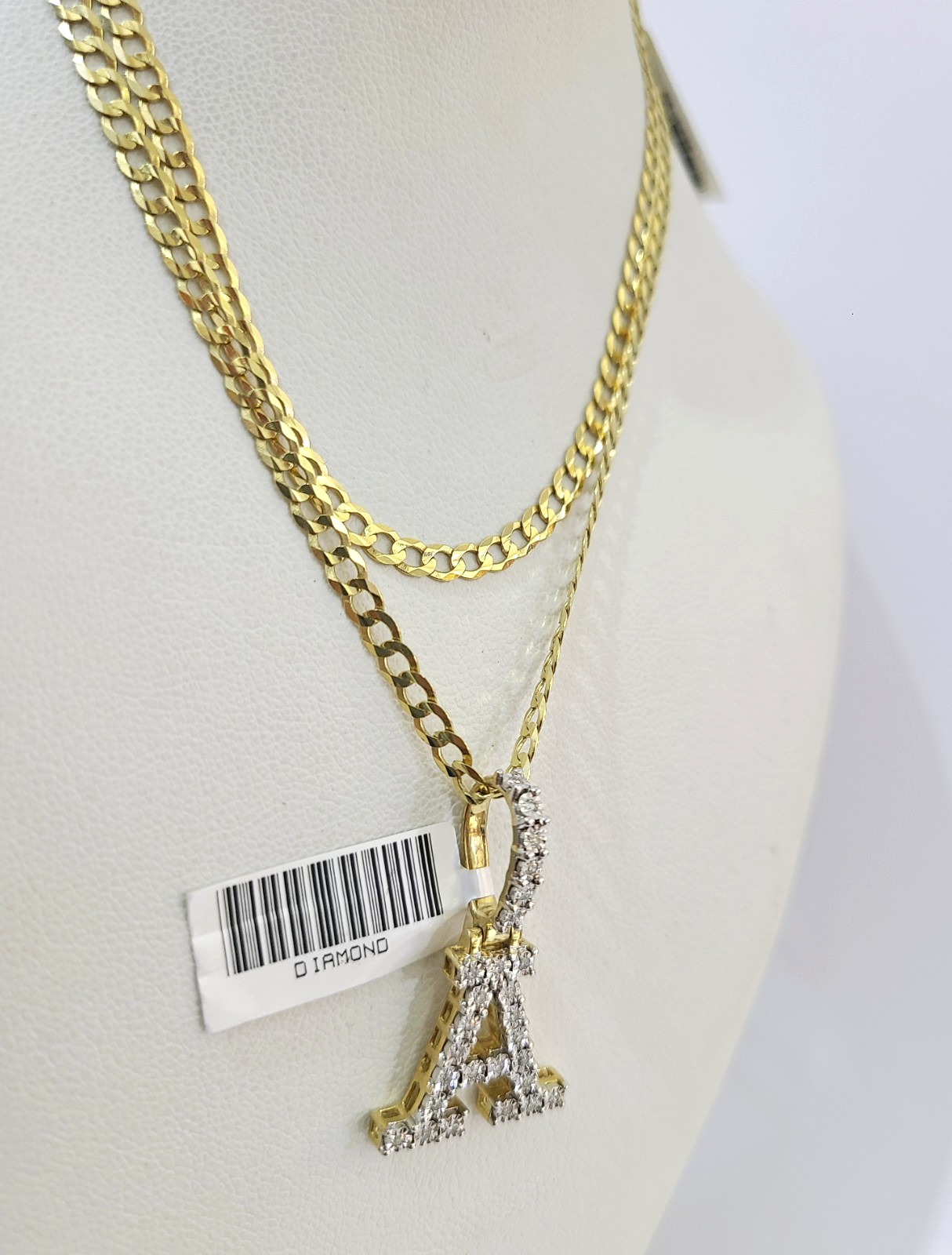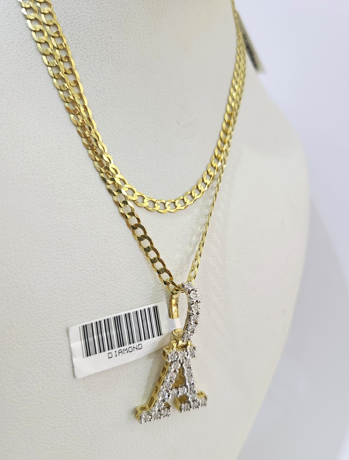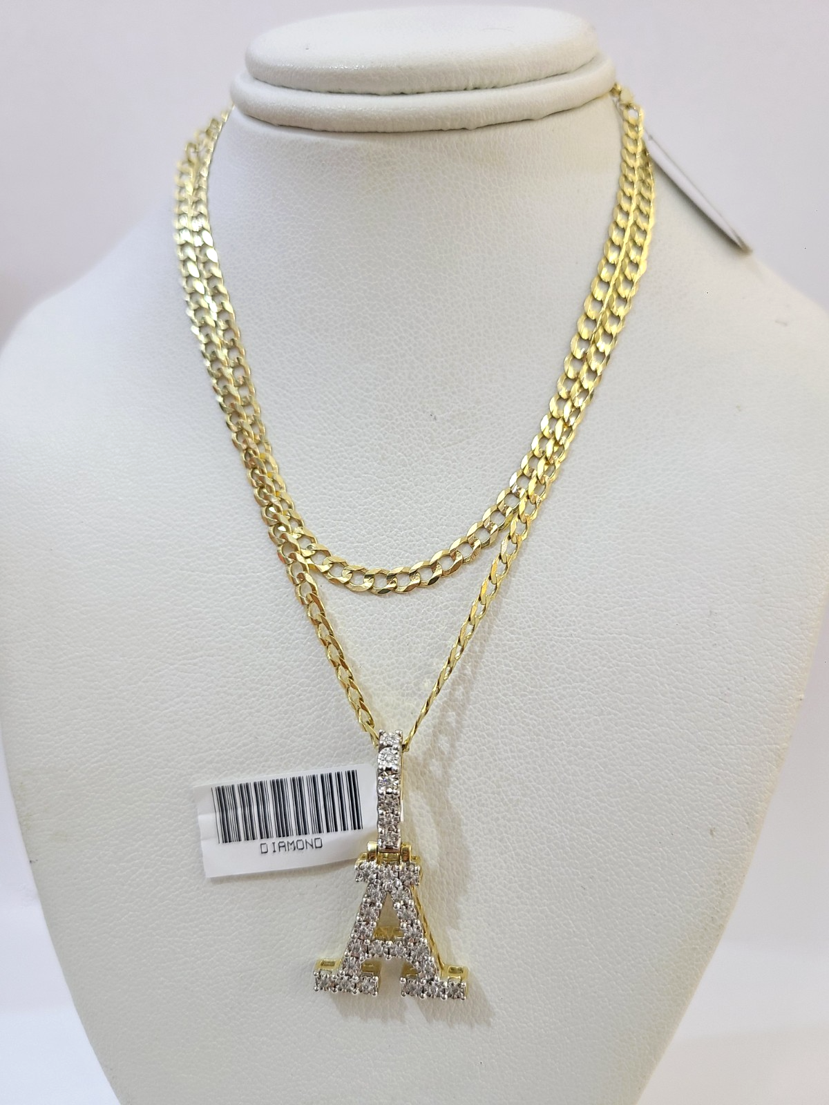 10k Gold Chain Necklace A Diamond Initial Pendant Set Cuban Curb 3mm 20"-30" - 20 Inch with Chain