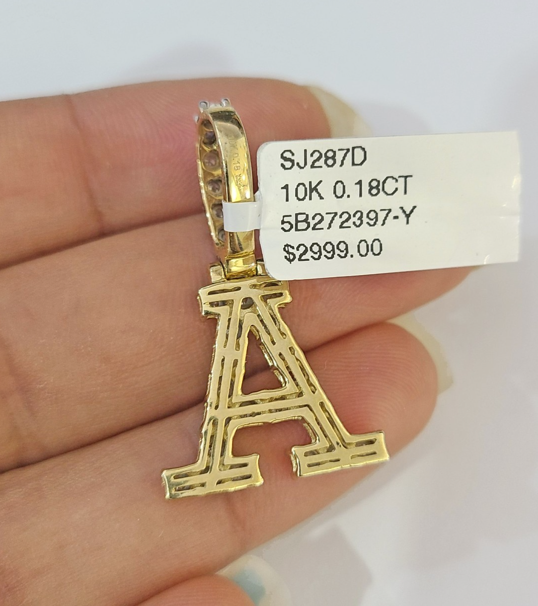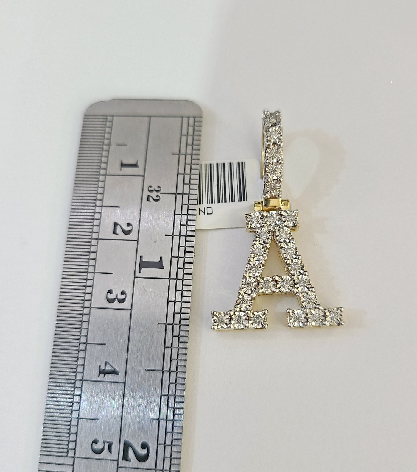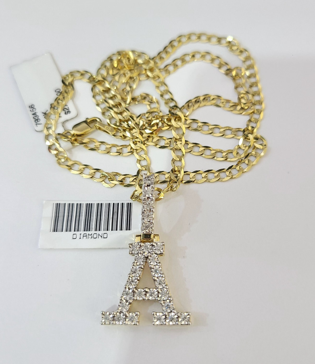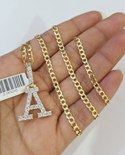 10k Gold Chain Necklace A Diamond Initial Pendant Set Cuban Curb 3mm 20"-30" - 20 Inch with Chain