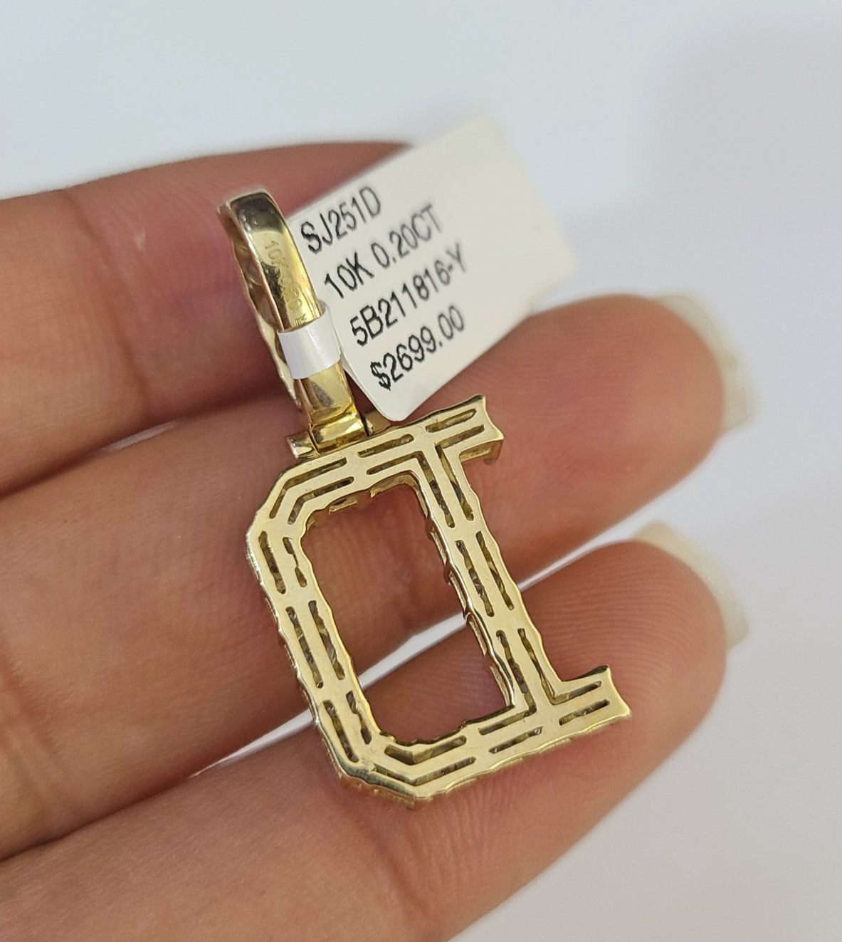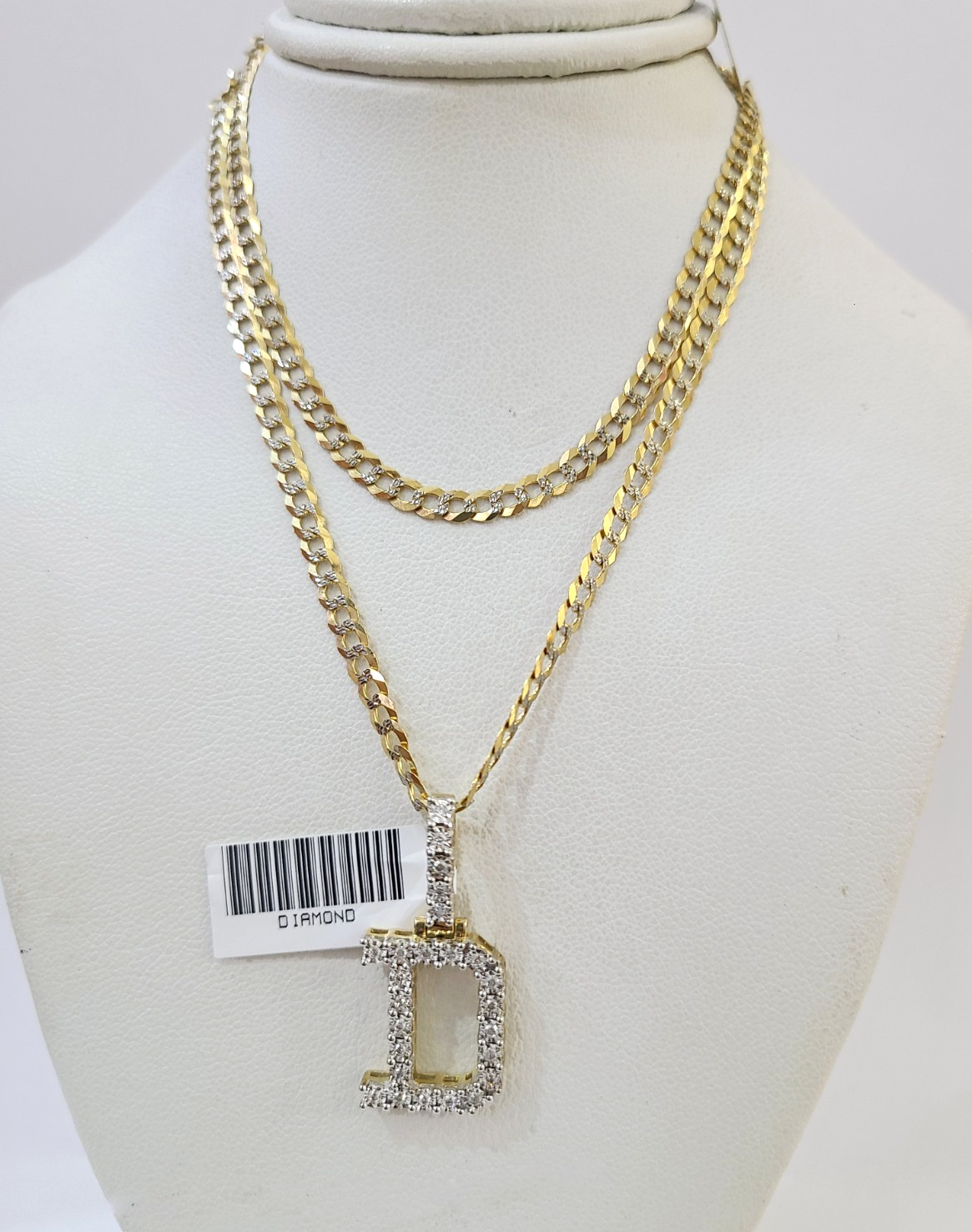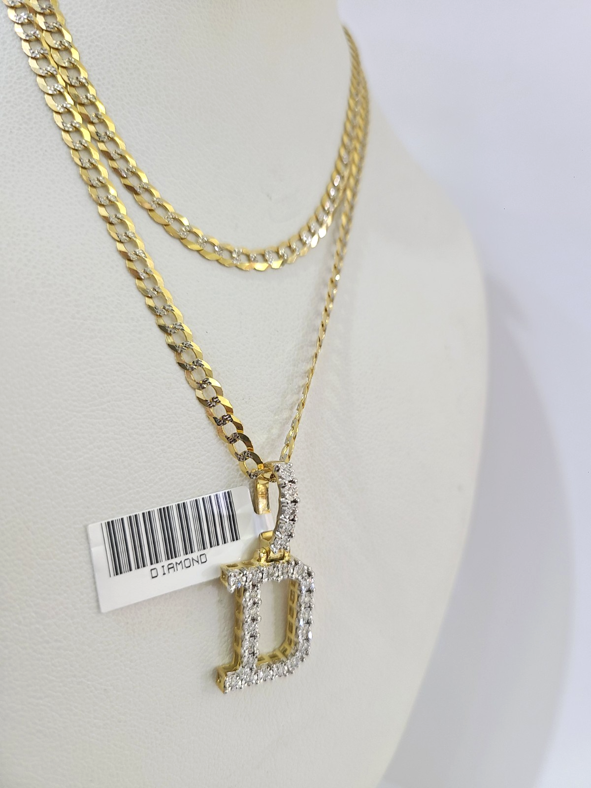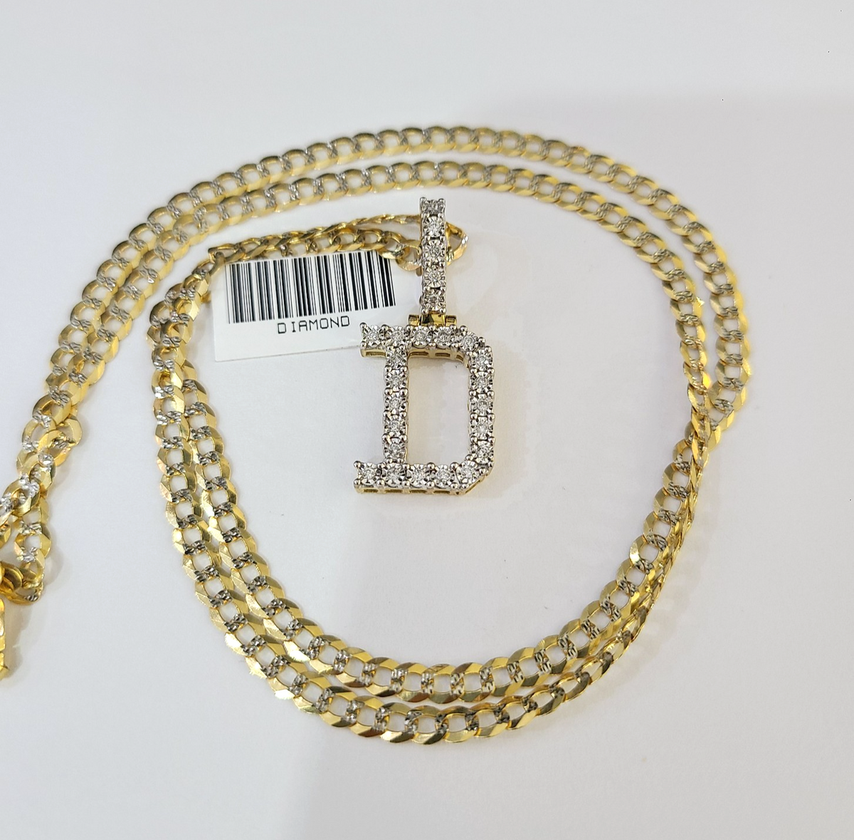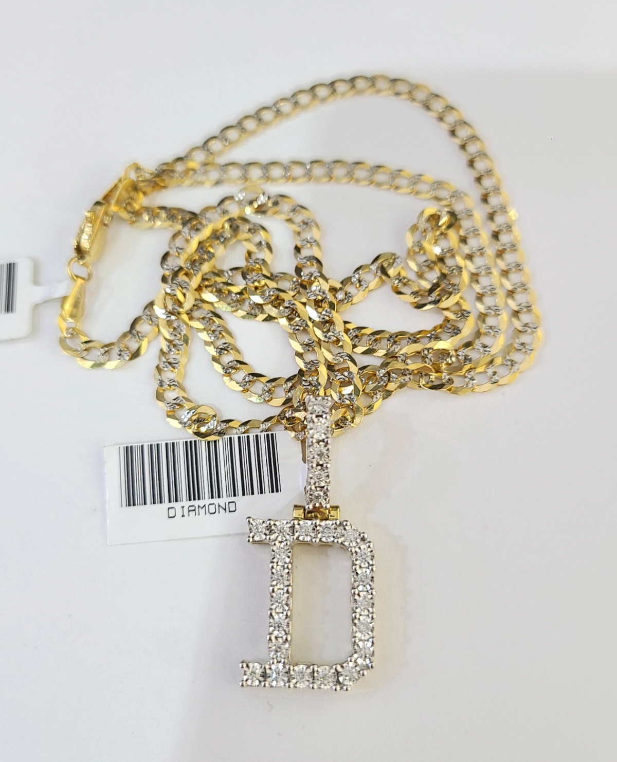 10k Gold Chain Necklace D Diamond Initial Pendant Set Cuban Curb 3mm 20"-30" - 20 Inch with Chain