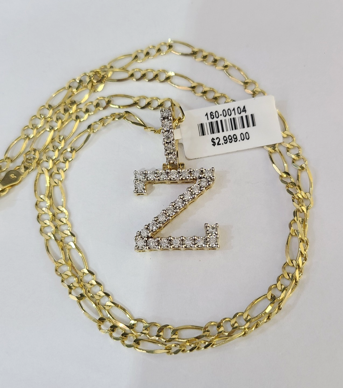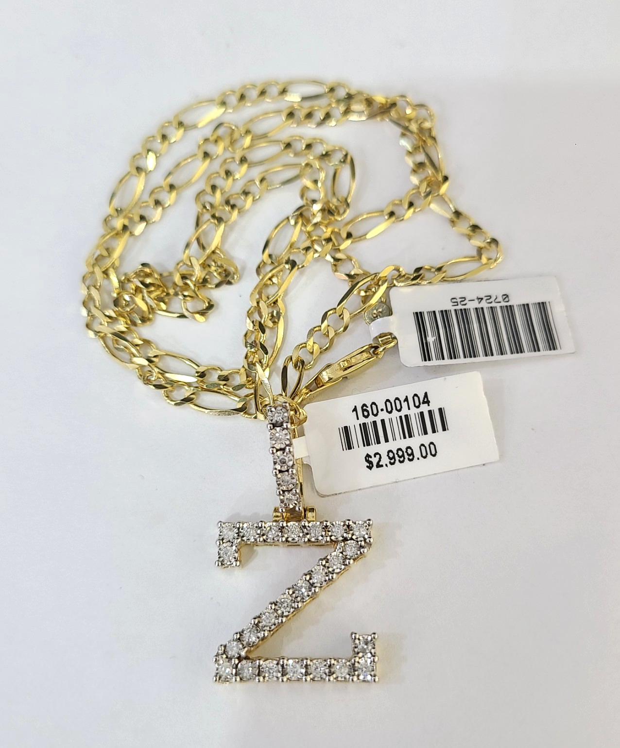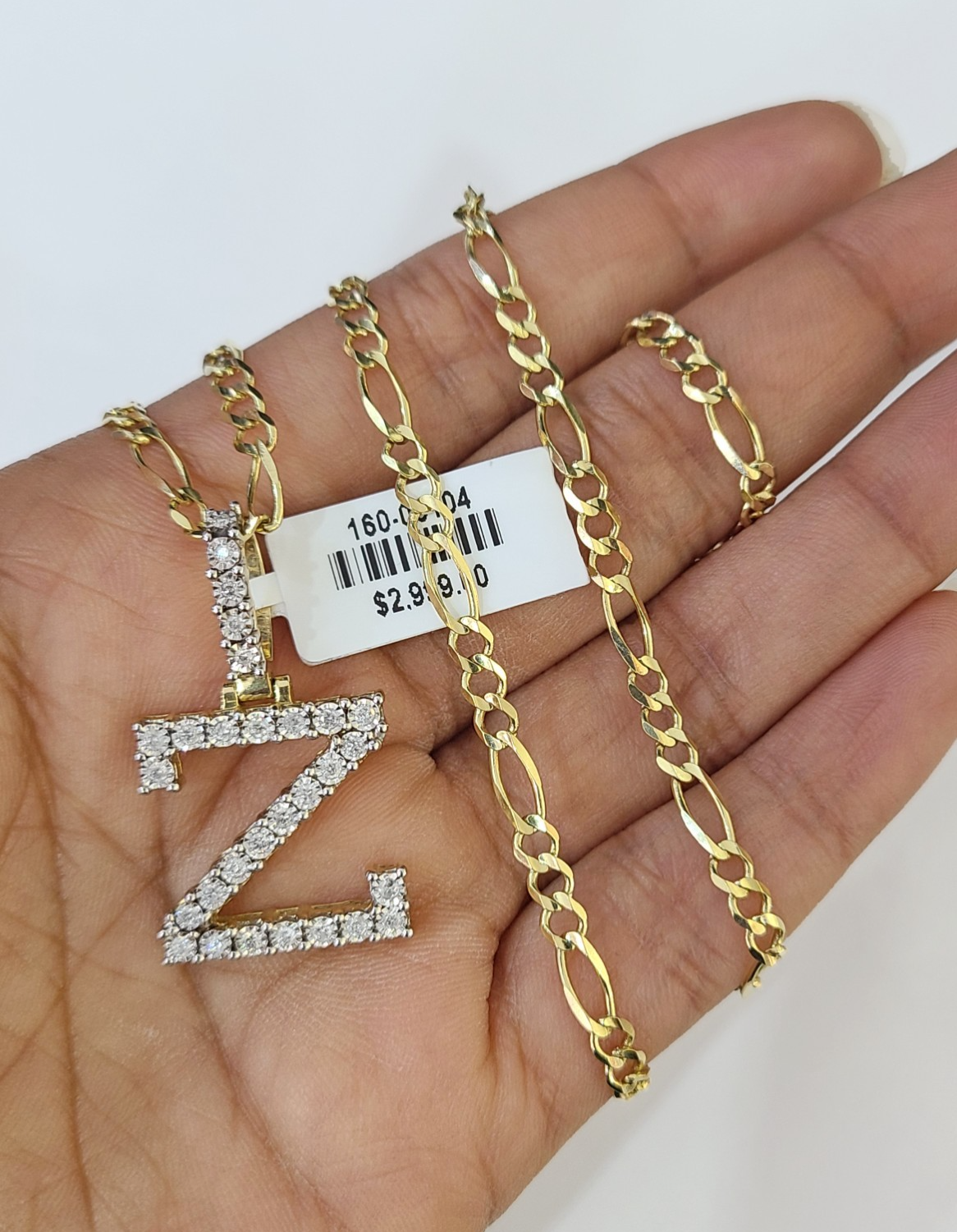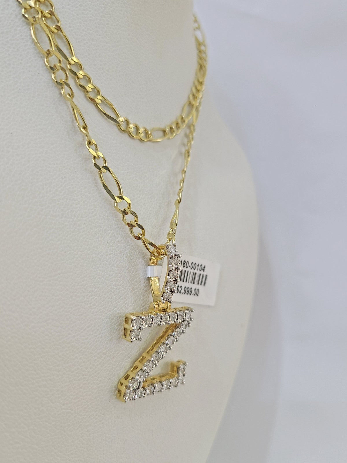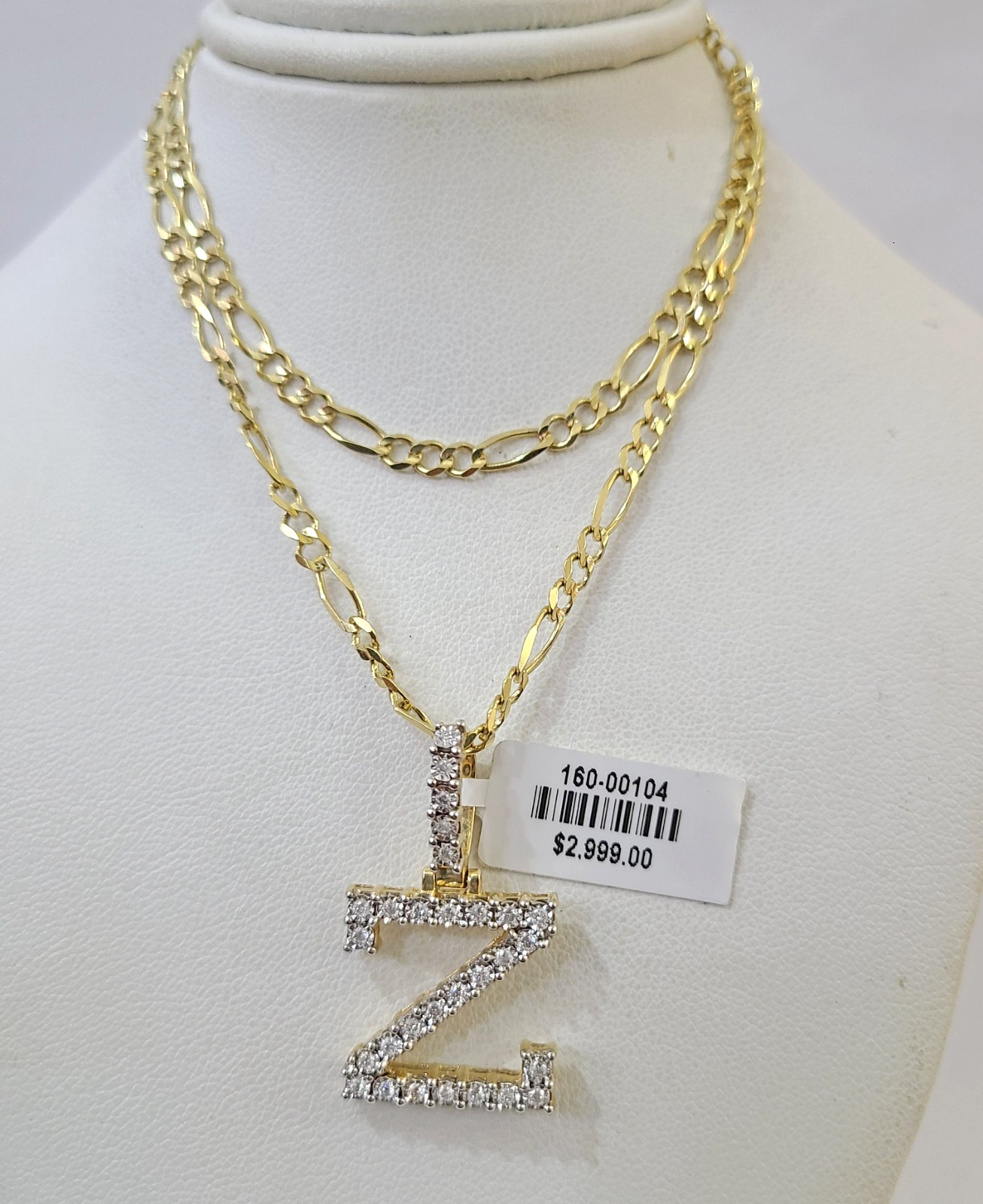 10k Gold Figaro Chain Z Diamond Initial Pendant 3mm 20-28 inch SET Necklace - 20 Inch with Chain