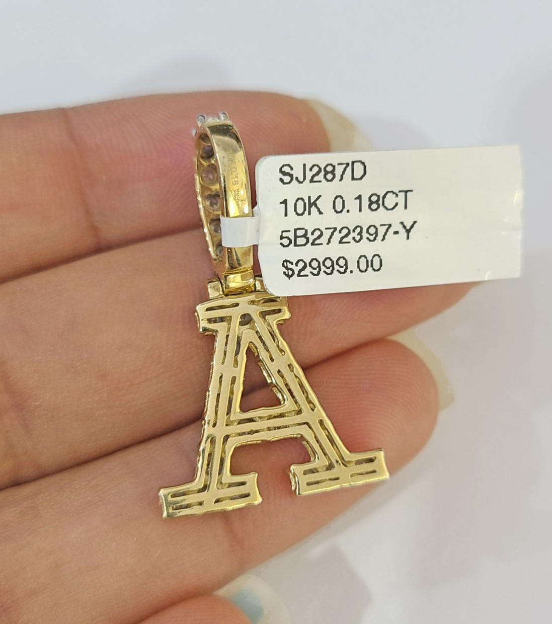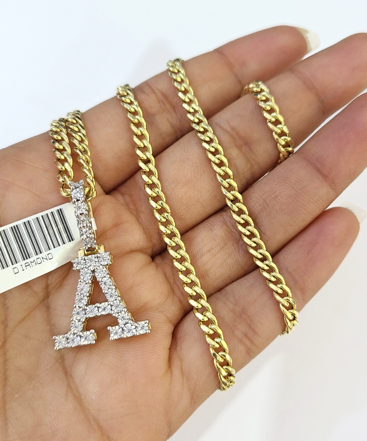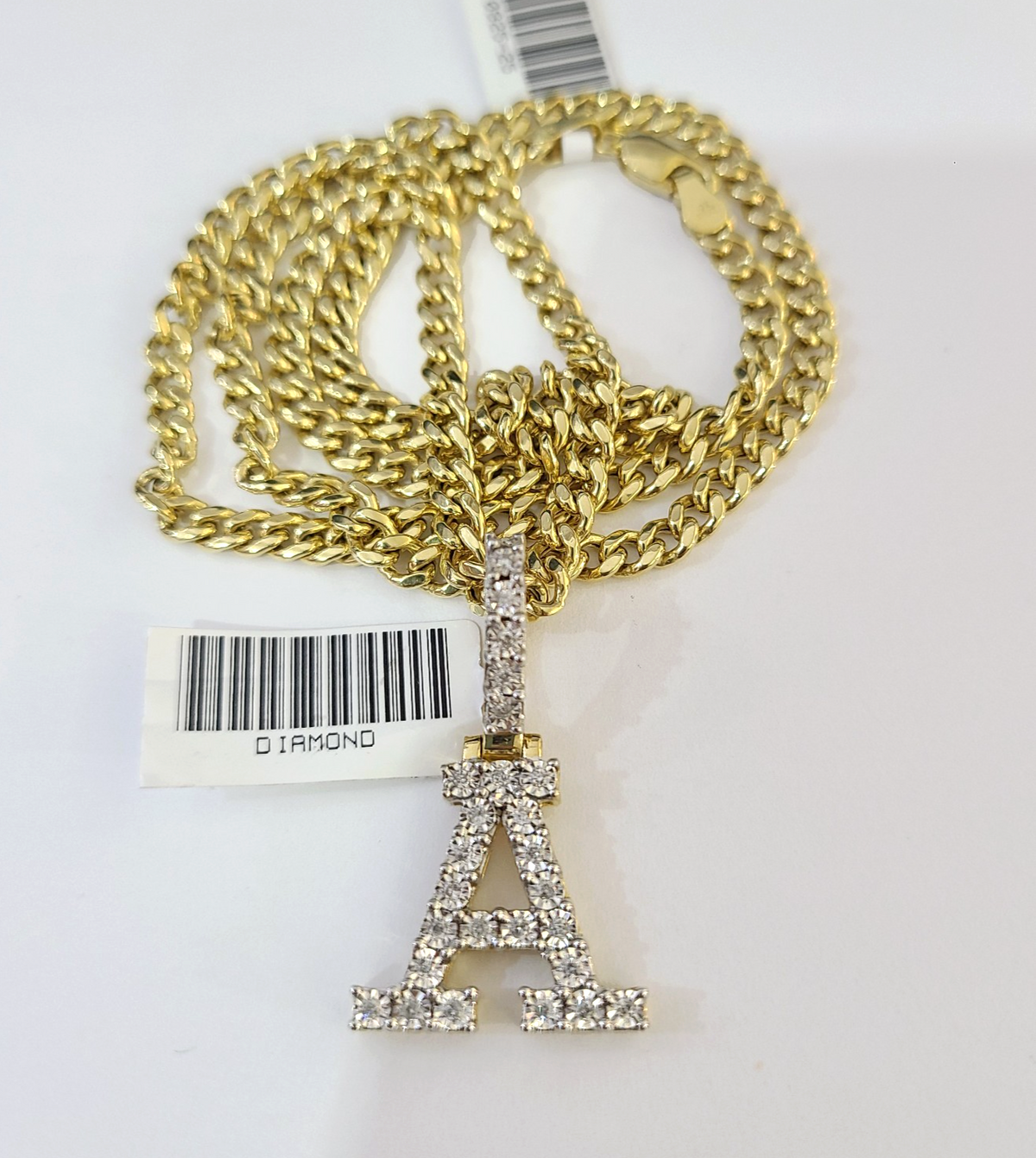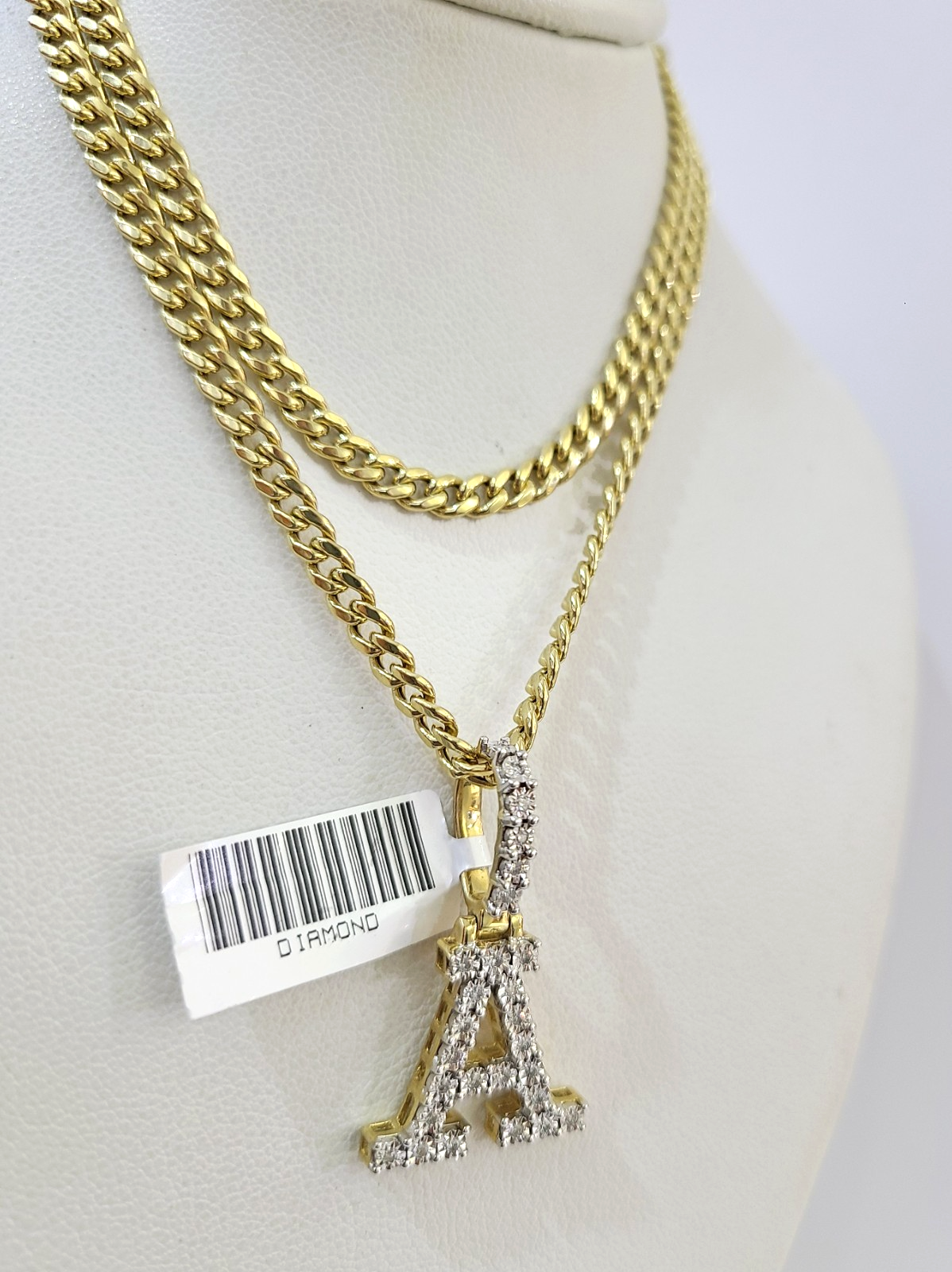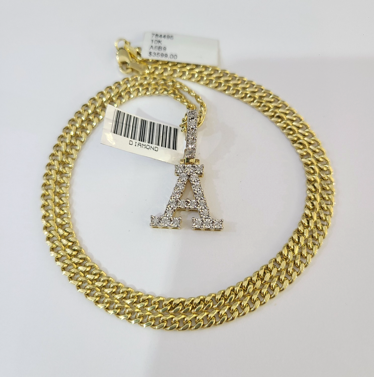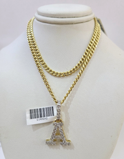 10K Gold Miami Cuban Chain A Diamond Initial 18"-24" 2mm Pendant Necklace SET - 20 Inch with Chain