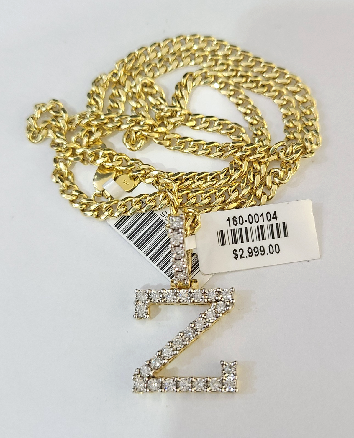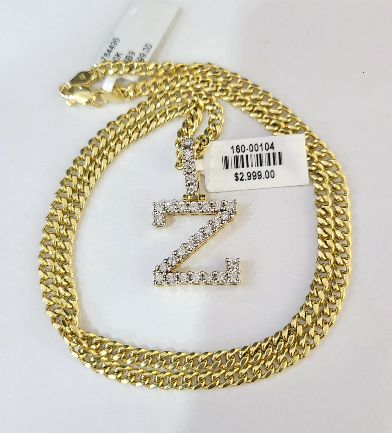10K Gold Miami Cuban Chain Z Diamond Initial 20"-28" 3mm Pendant Neckl – Goldenlinq index