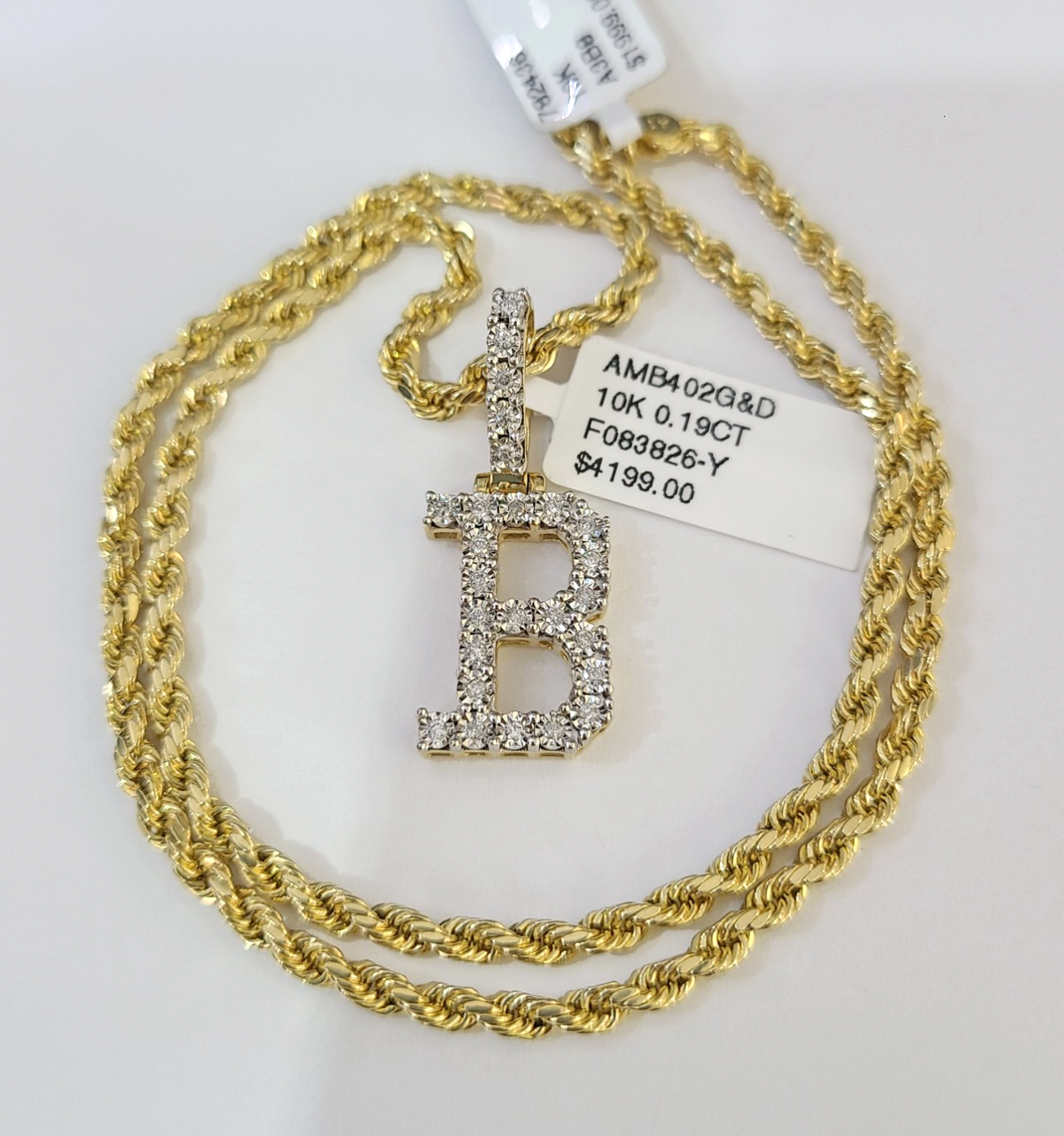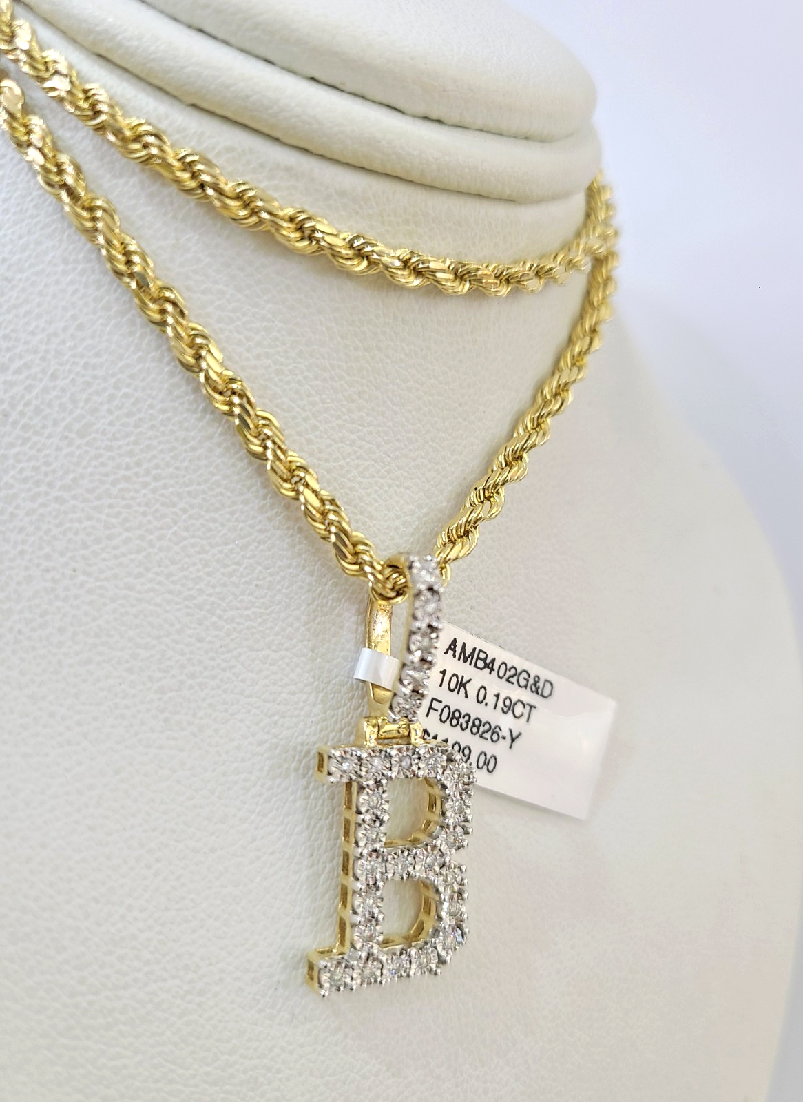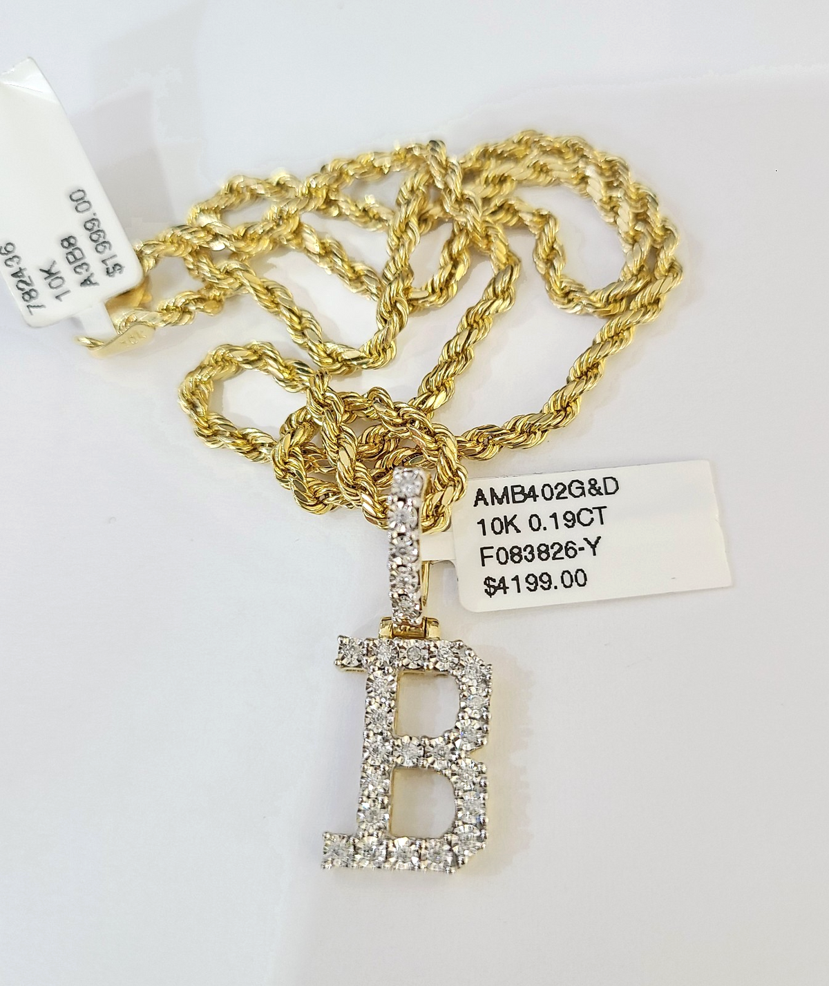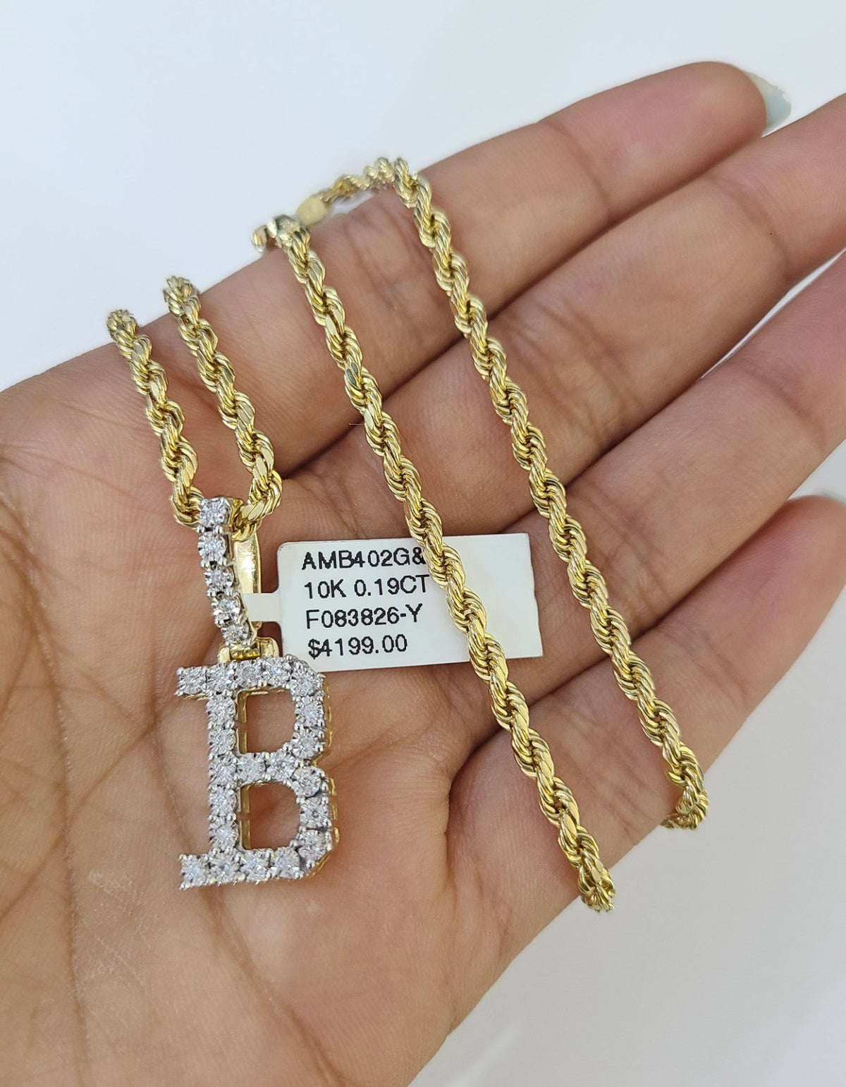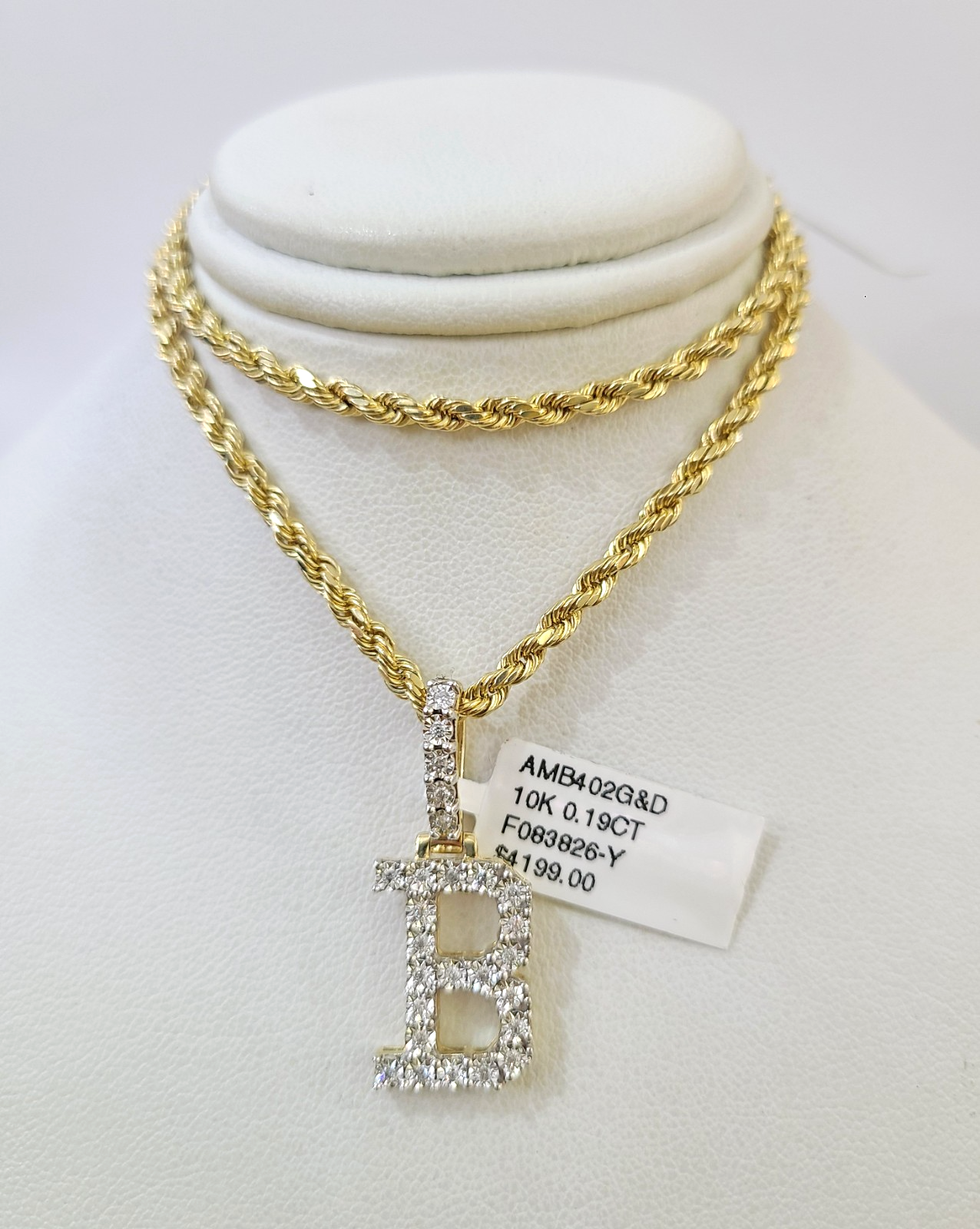 10k Rope Chain B Diamond Initial Charm Necklace Pendant Set 2mm 18"-24 – Goldenlinq index