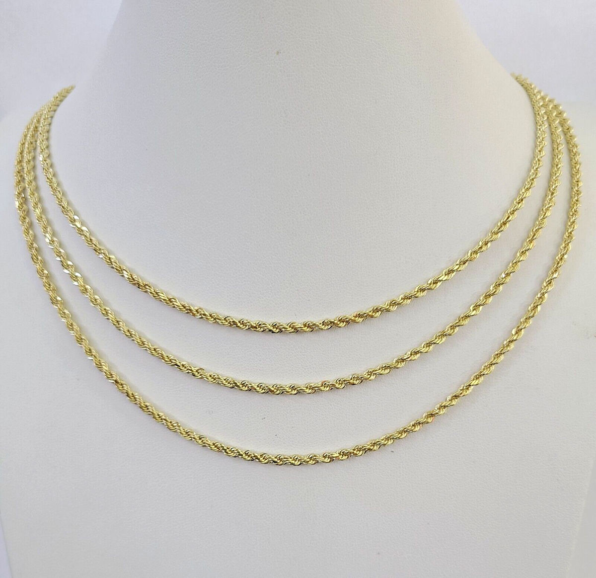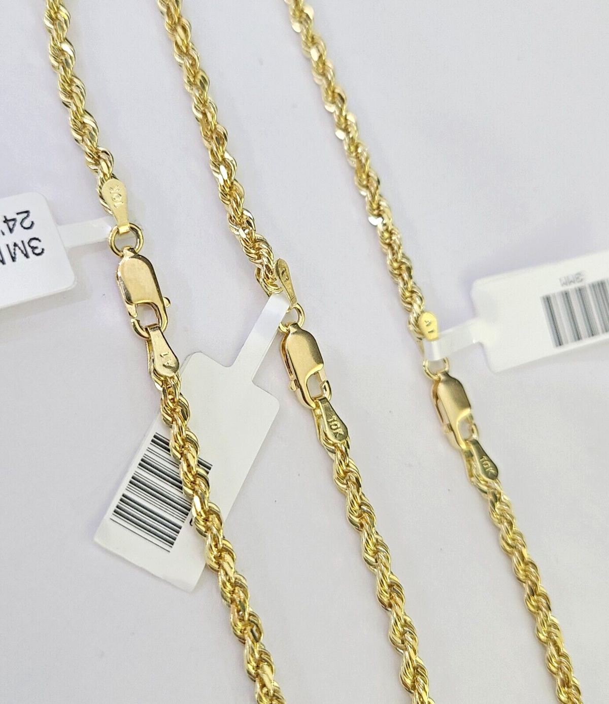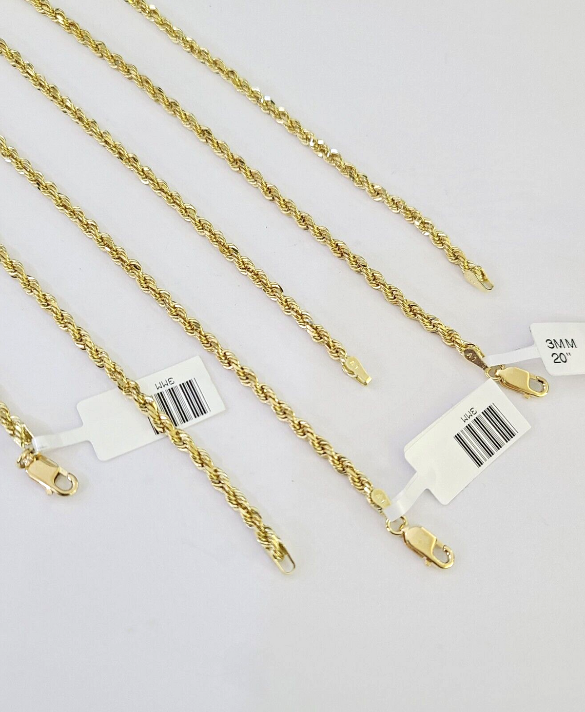 10k Solid Real Rope Chain Necklace 3mm 18"-26" Yellow Gold Men Women G – Goldenlinq index