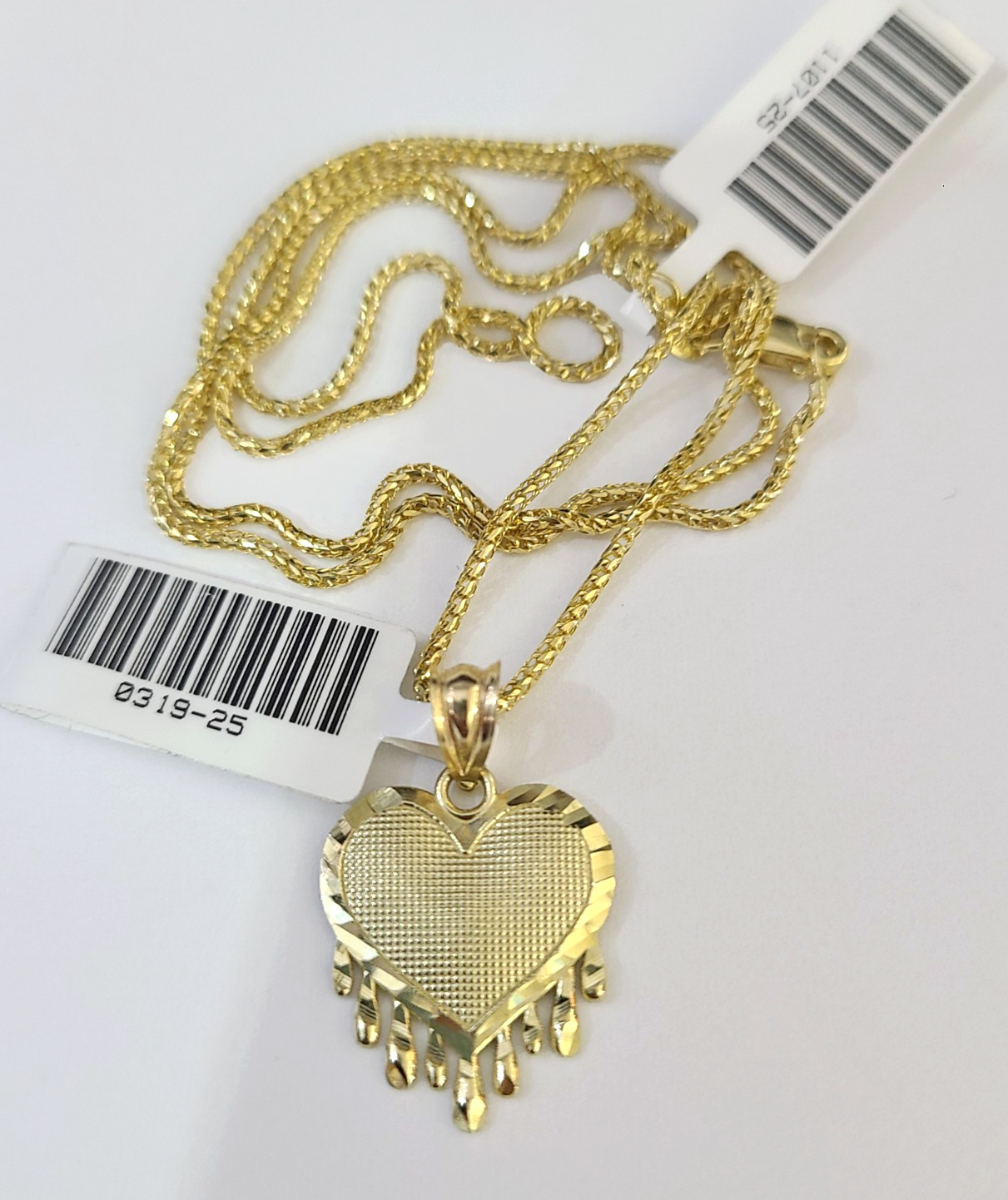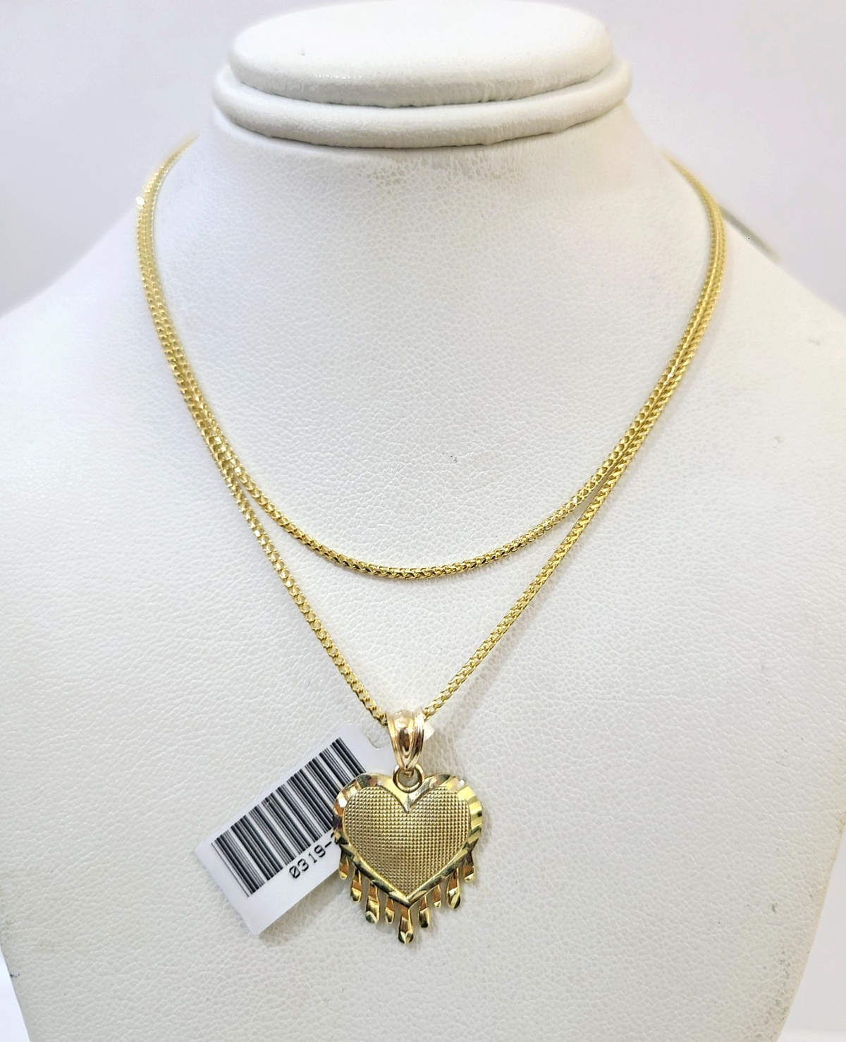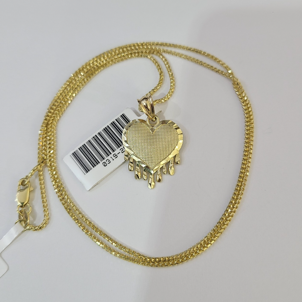 10kt Franco Gold Chain Necklace Dripping Heart Charm 1mm 16-22 Inches Ladies
