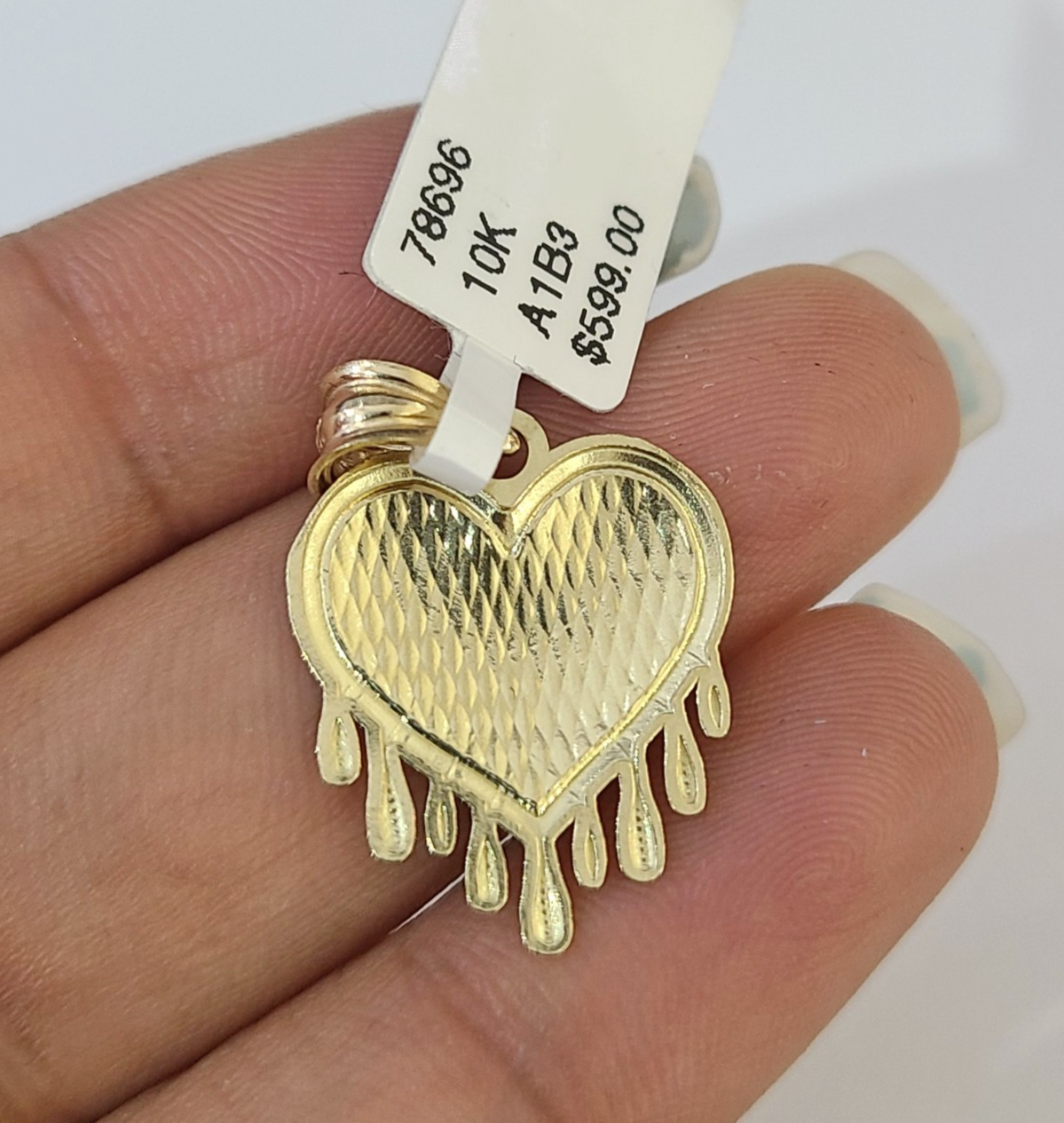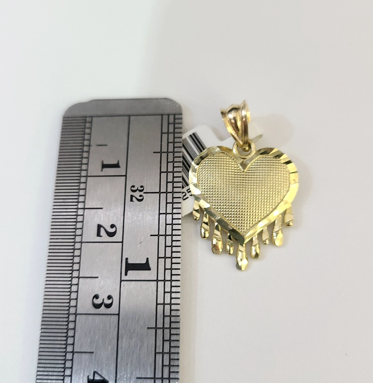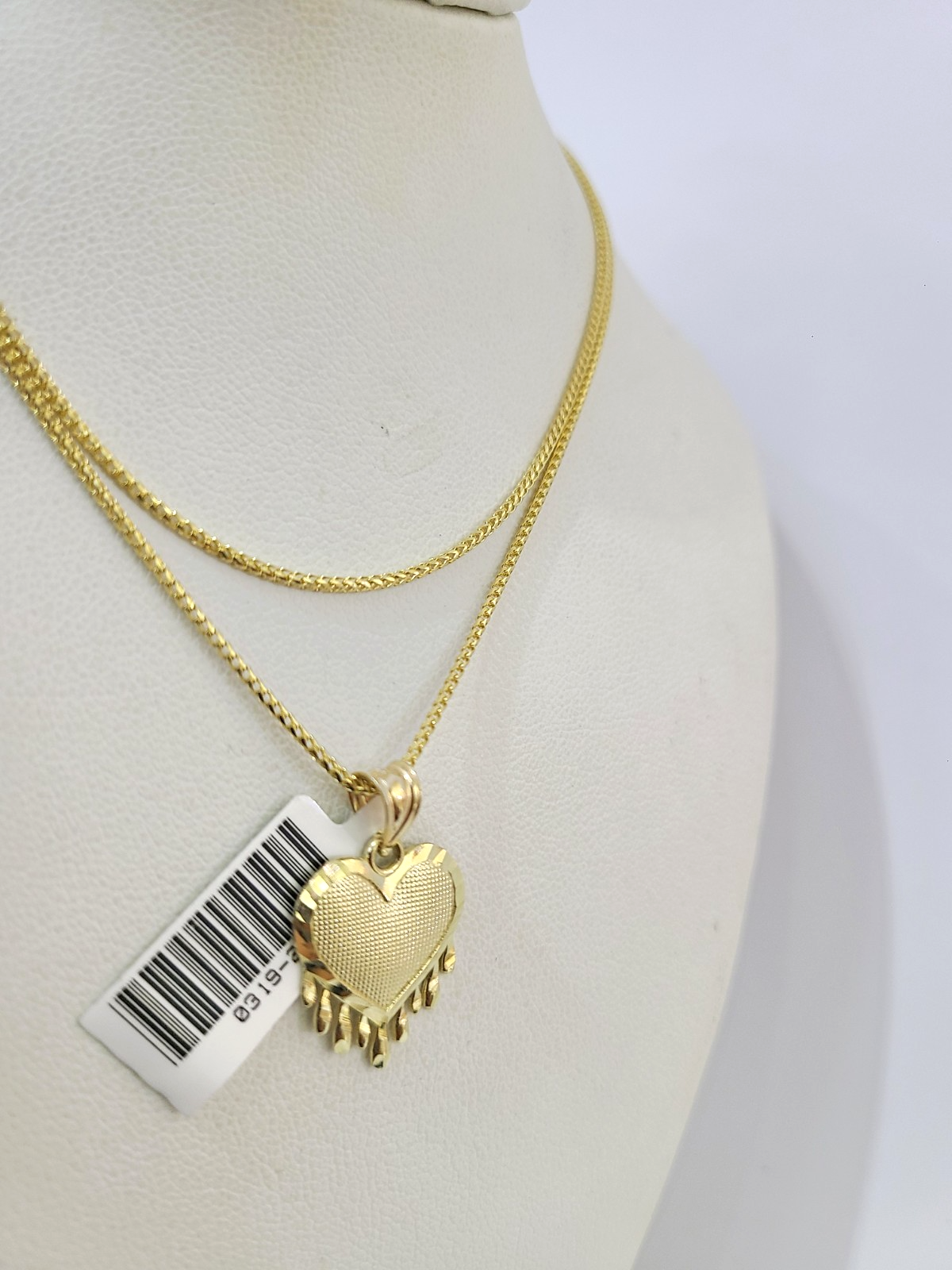 10kt Franco Gold Chain Necklace Dripping Heart Charm 1mm 16-22 Inches Ladies
