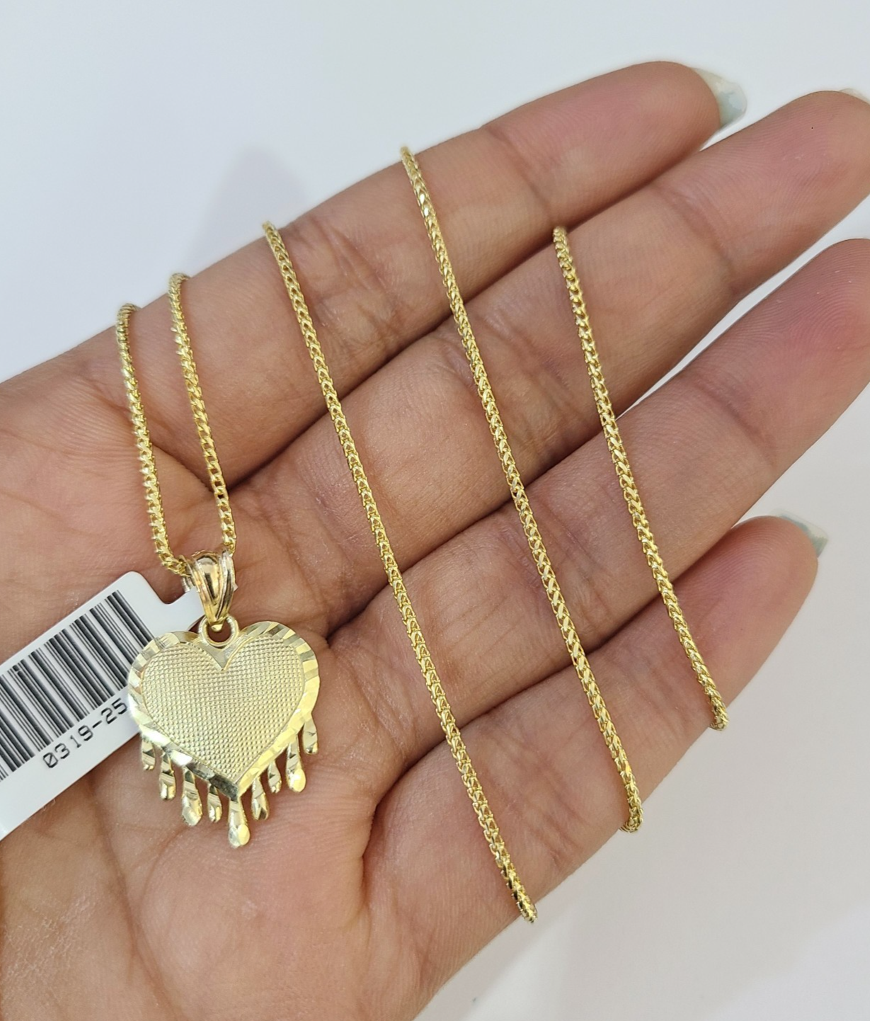 10kt Franco Gold Chain Necklace Dripping Heart Charm 1mm 16-22 Inches – Goldenlinq index
