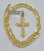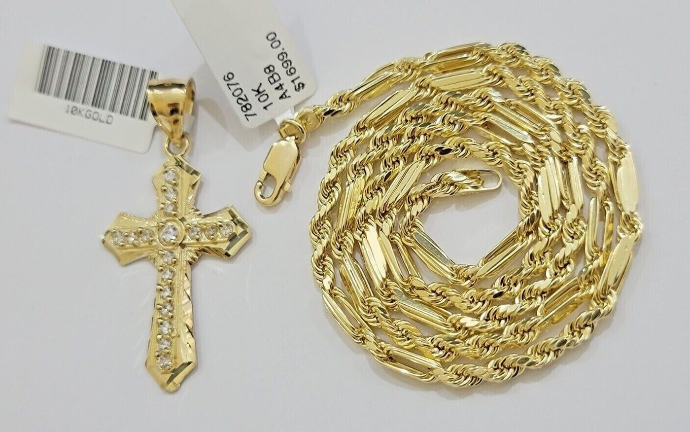 10kt Gold Milano Rope Chain Jesus Cross Charm Pendant Set 18-24'' Inch Necklace - 22 inch with charm