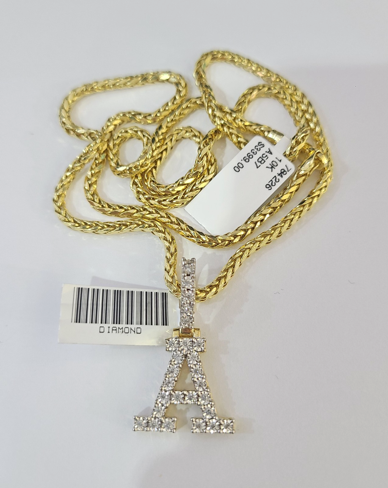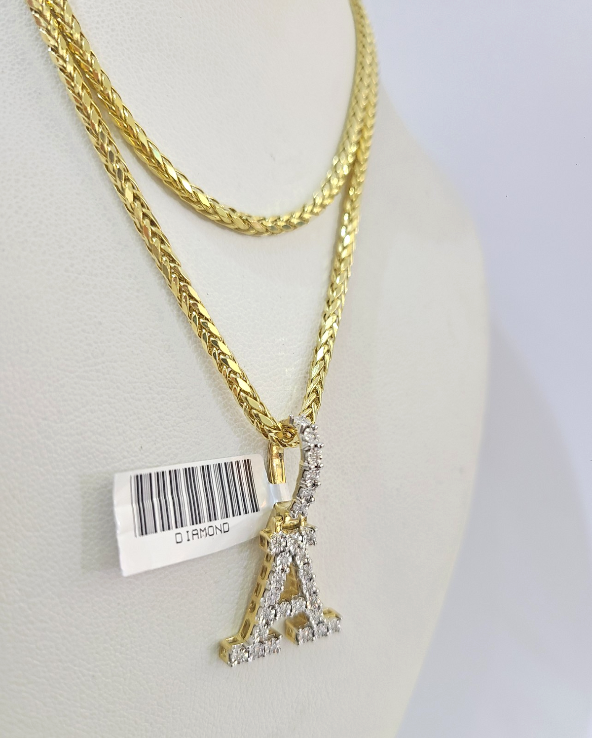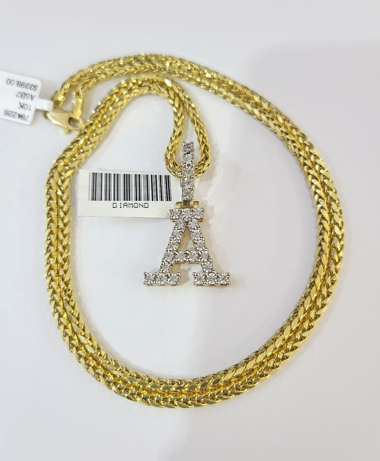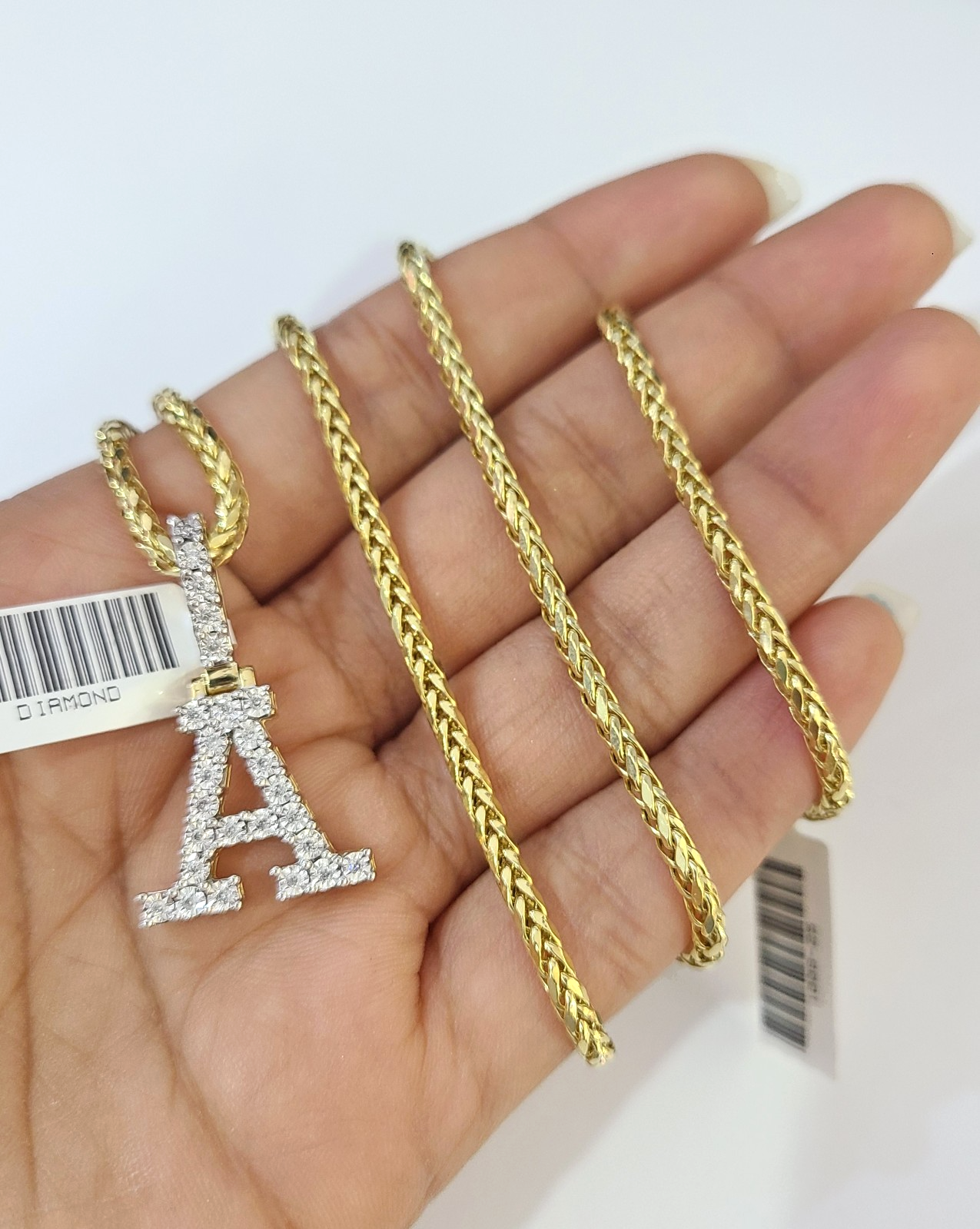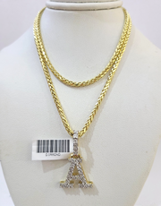 REAL 10k Yellow Gold Palm Chain A Diamond Initial Pendant Charm 3mm SET Necklace - 20 Inch with Chain