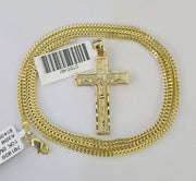 10K Franco Chain Jesus Cross Pendant Charm Necklace 16"-24" 2mm Gold SET Yellow - 18" chain with charm