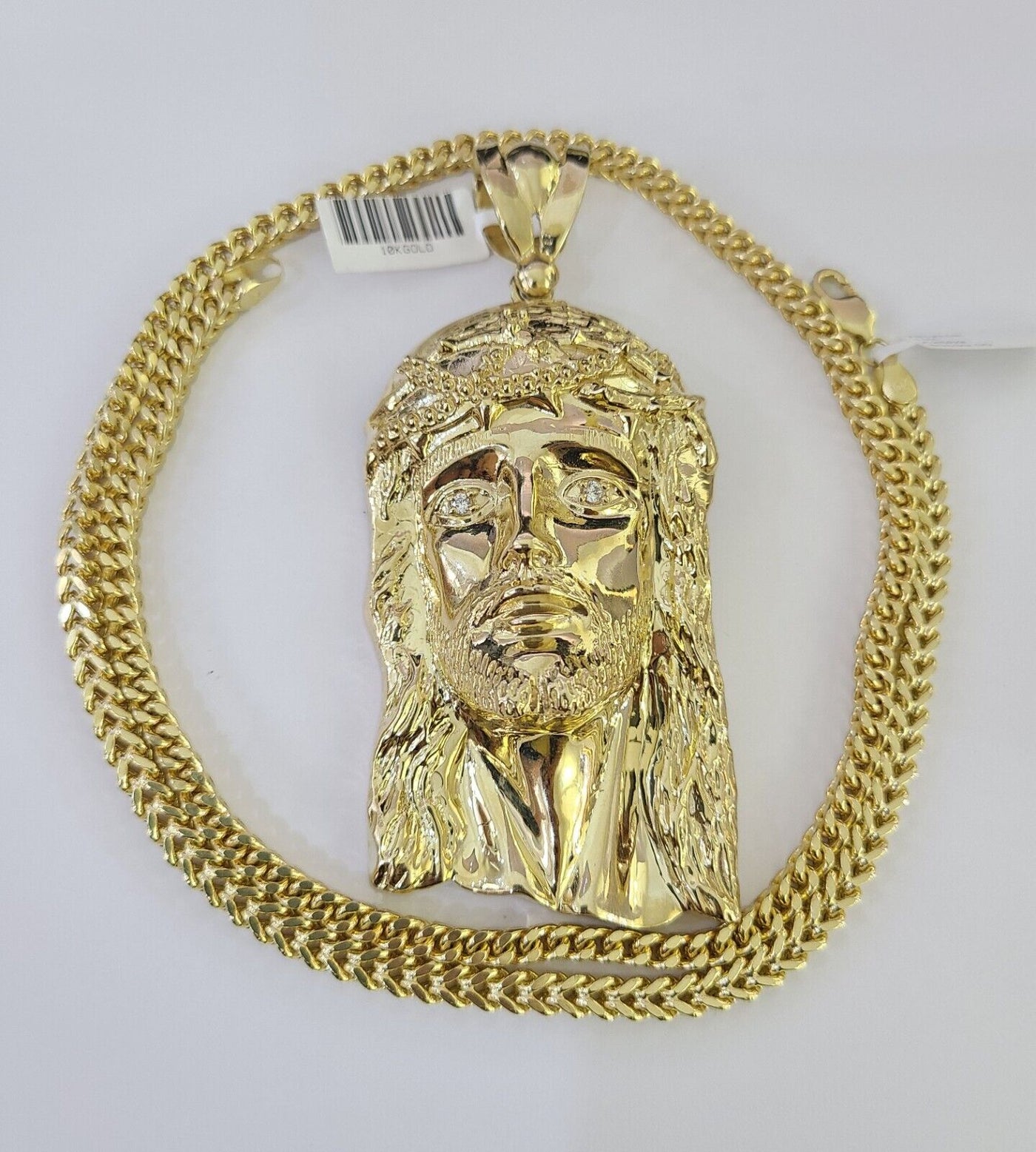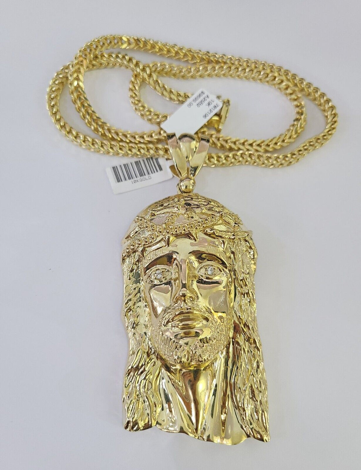10K Franco Chain Jesus Head Pendant Charm Necklace 20"-26" 5mm Gold Yellow SET - 20" chain with charm