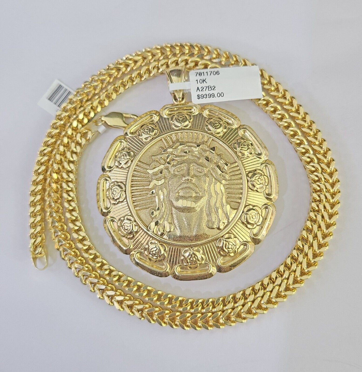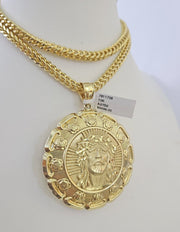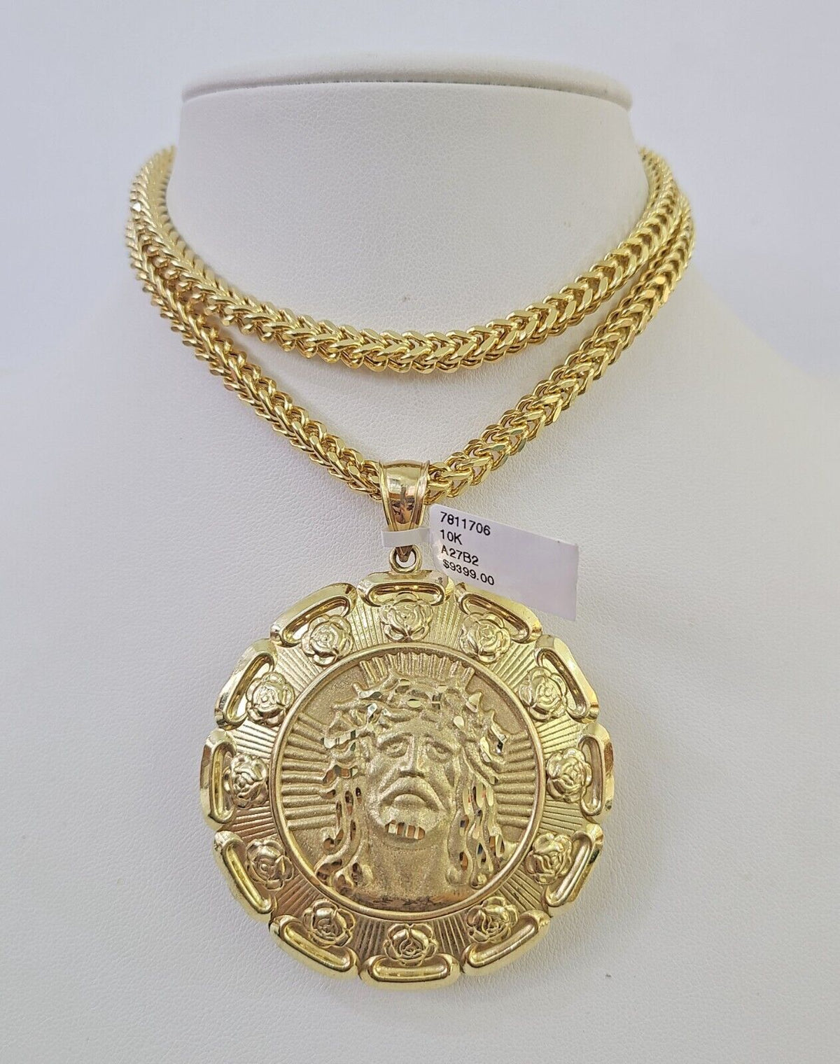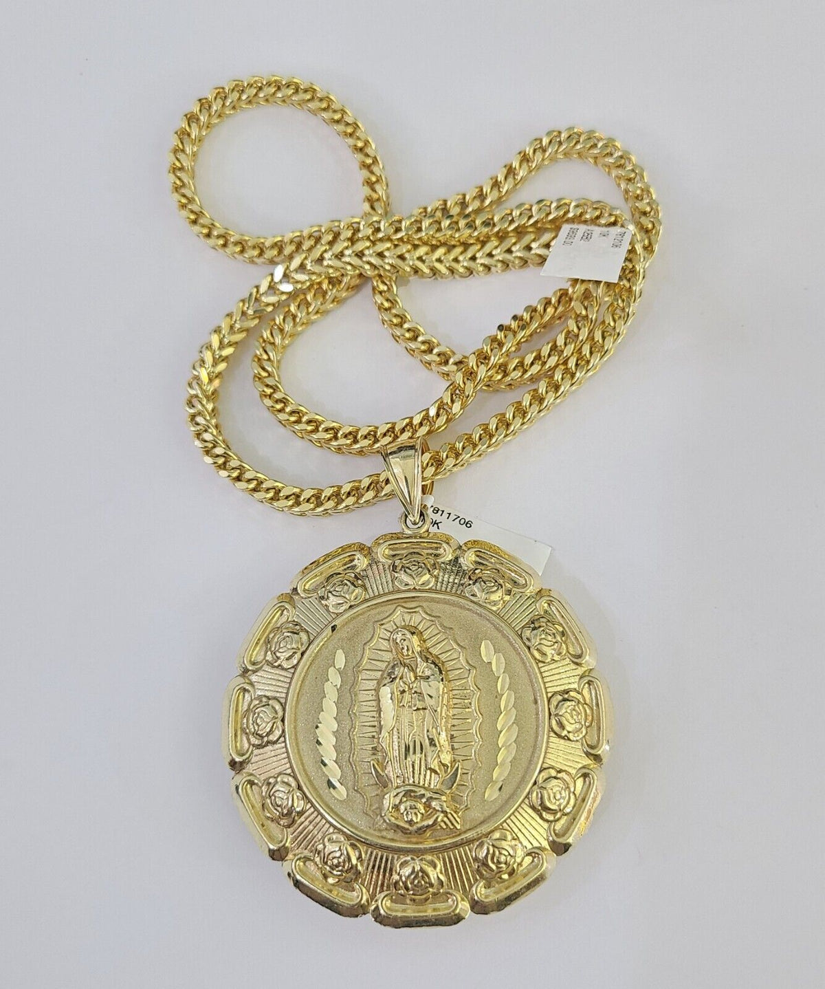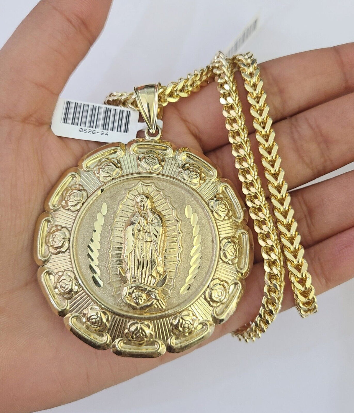 10K Franco Chain Jesus Mary Pendant Charm Necklace 20"-26" 5mm Gold SET Yellow - 20" chain with charm