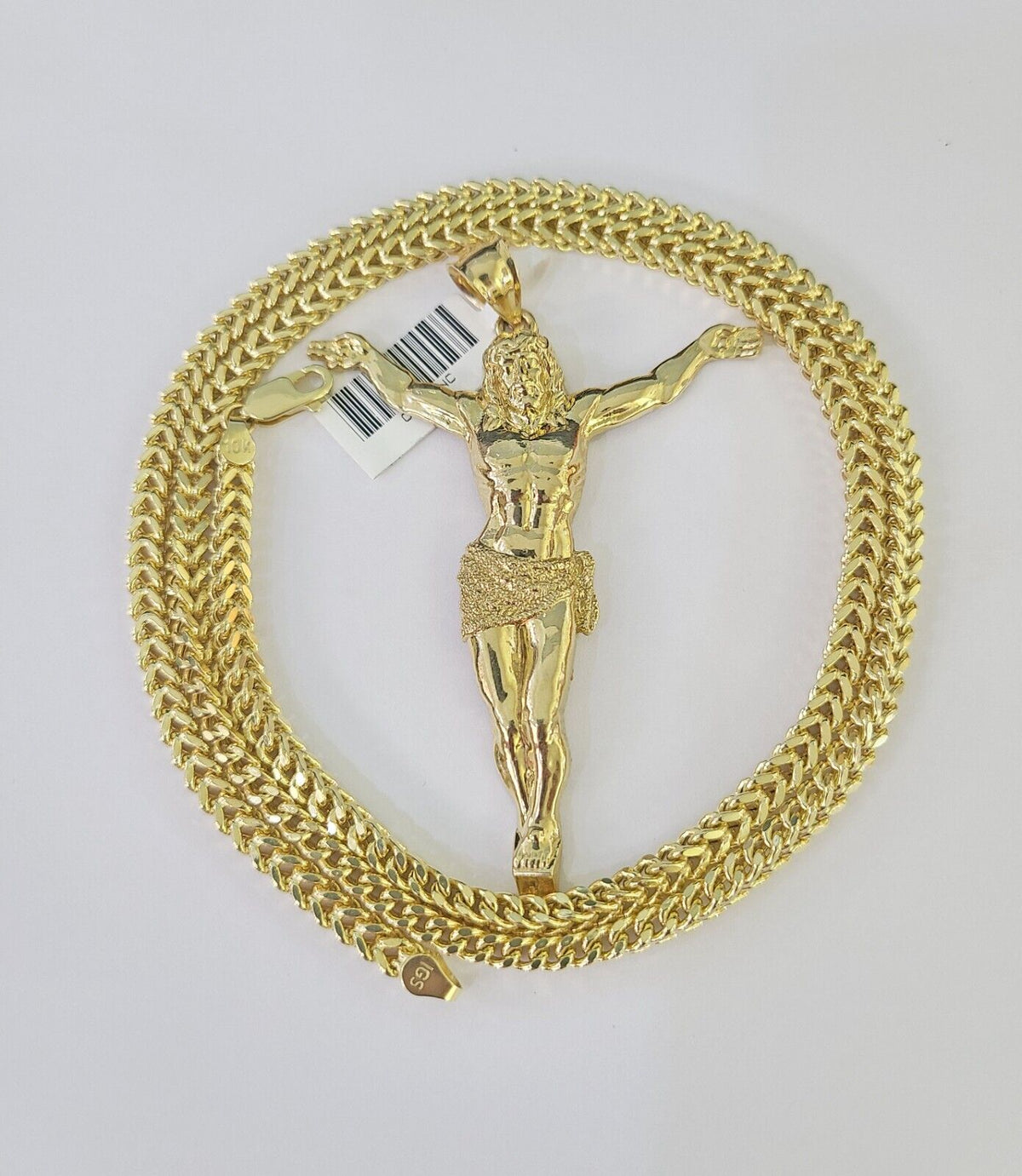 10K Franco Chain Jesus Pendant Charm Necklace 20"-28" 4mm Gold SET Yellow - 20" chain with charm
