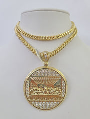 10K Franco Chain Last Supper Pendant Charm Necklace 20"-26" 5mm Gold SET Yellow - 20" chain with charm