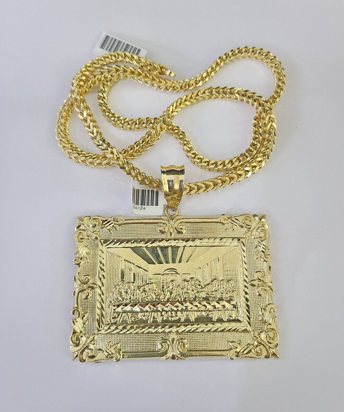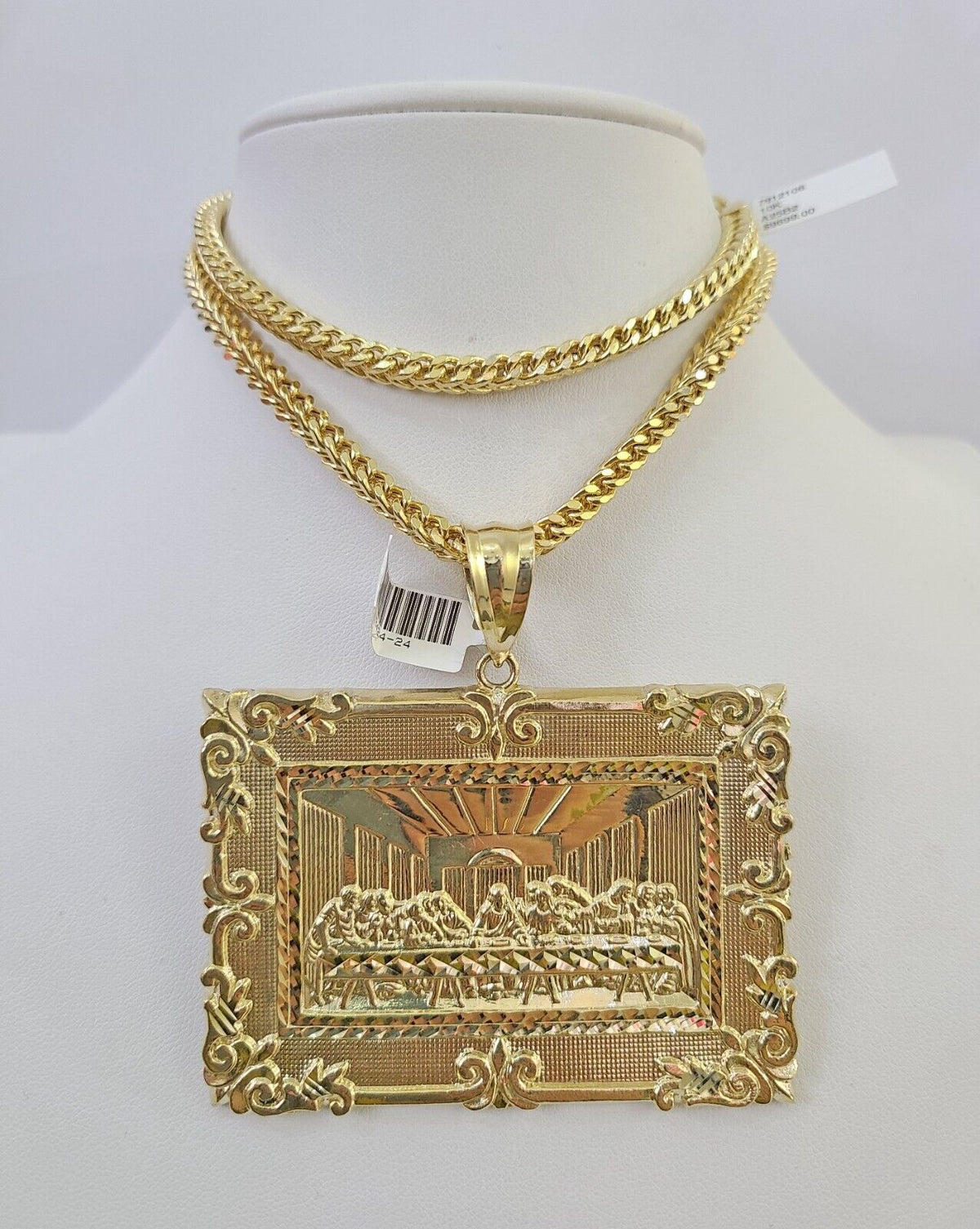 10K Franco Chain Last Supper Pendant Charm Necklace 20"-26" 5mm Yellow Gold SET - 20" chain with charm