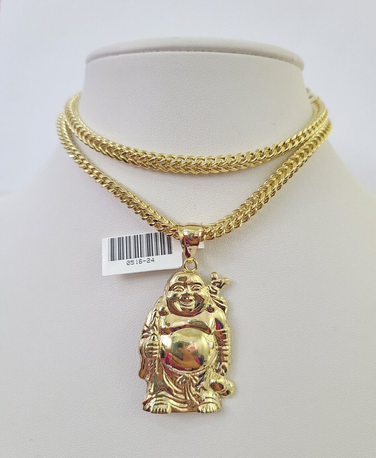 10K Franco Chain Laughing Buddha Pendant Charm Necklace 20"-28" 4mm Go – Goldenlinq index