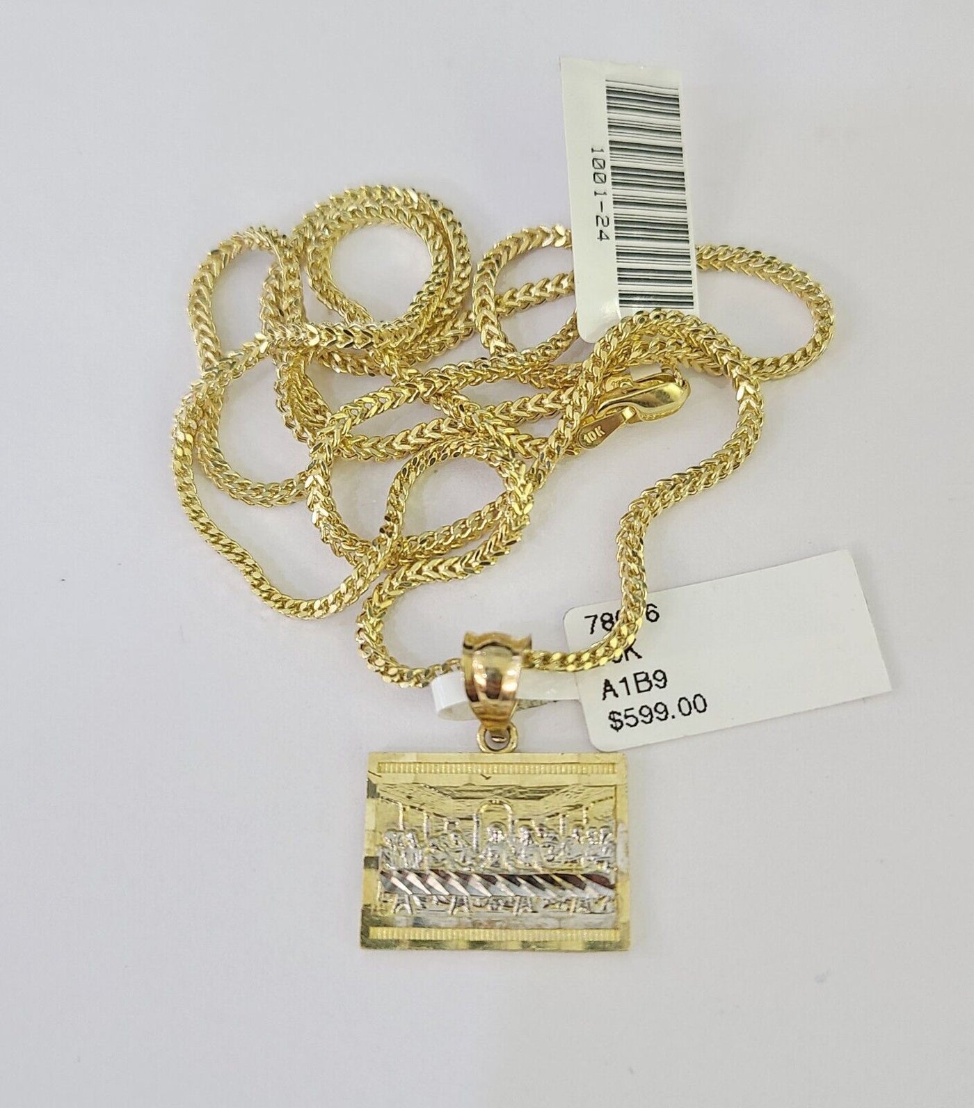 10K Franco Chain Last Supper Pendant Charm Necklace 16"-24" 2mm Gold SET - 18" chain with charm
