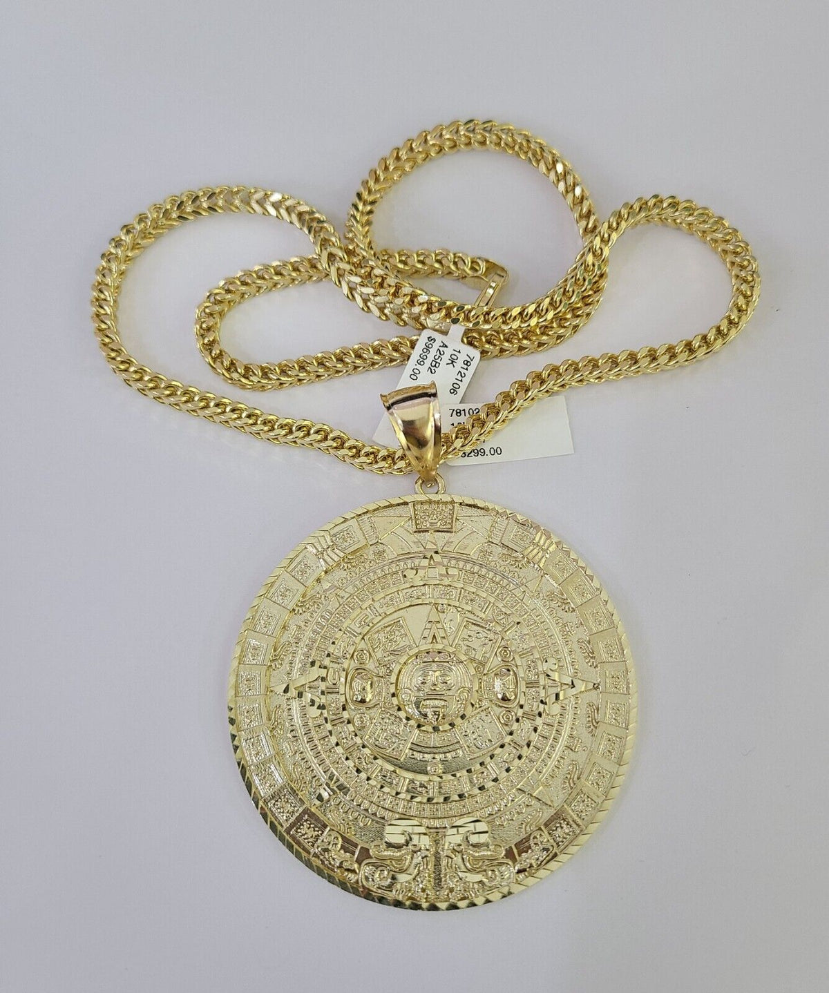 10K Franco Chain Mayan Calendar Pendant Charm Necklace 20"-26" 5mm Gold SET - 20" chain with charm