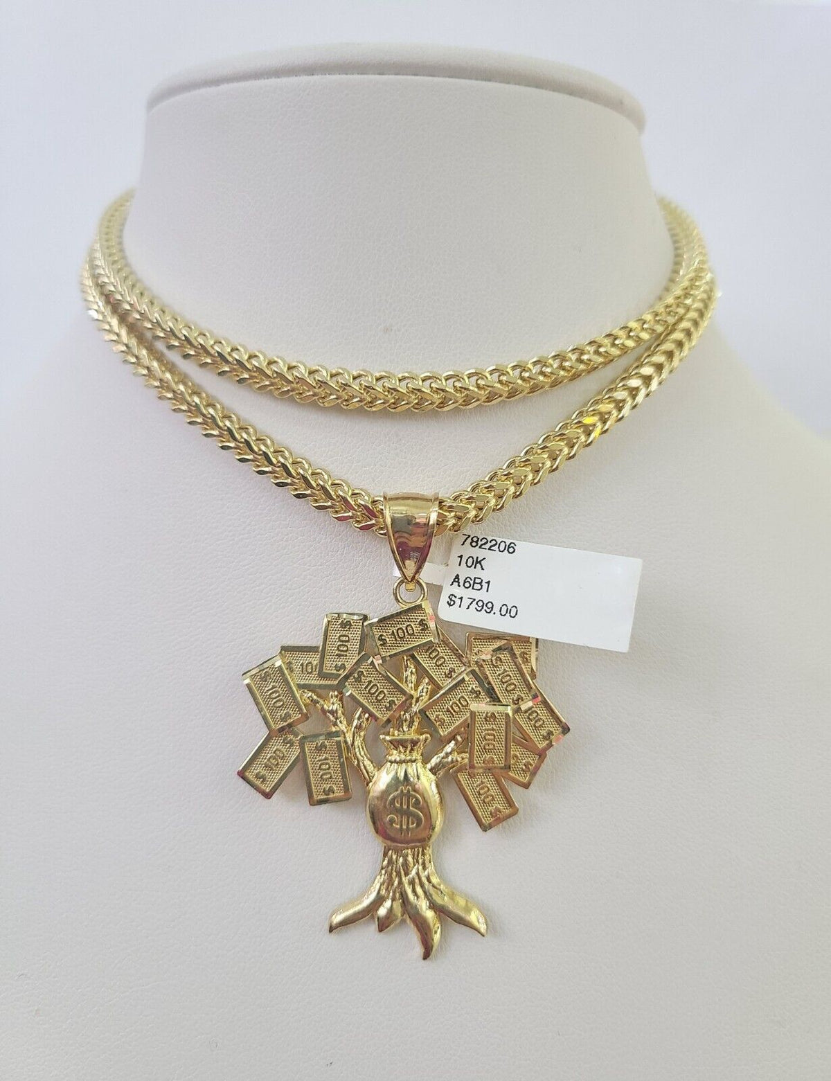 10K Franco Chain Money Tree Pendant Charm Necklace 20"-28" 4mm Yellow – Goldenlinq index