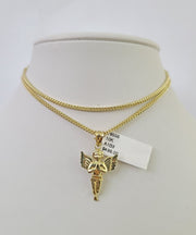 10K Franco Chain Praying Angel Pendant Charm Necklace 16"-24" 2mm Gold SET - 18" chain with charm