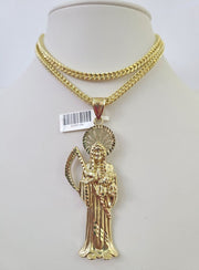 10K Franco Chain Saint Reaper Pendant Charm Necklace 20"-28" 4mm Gold SET Yellow - 20" chain with charm