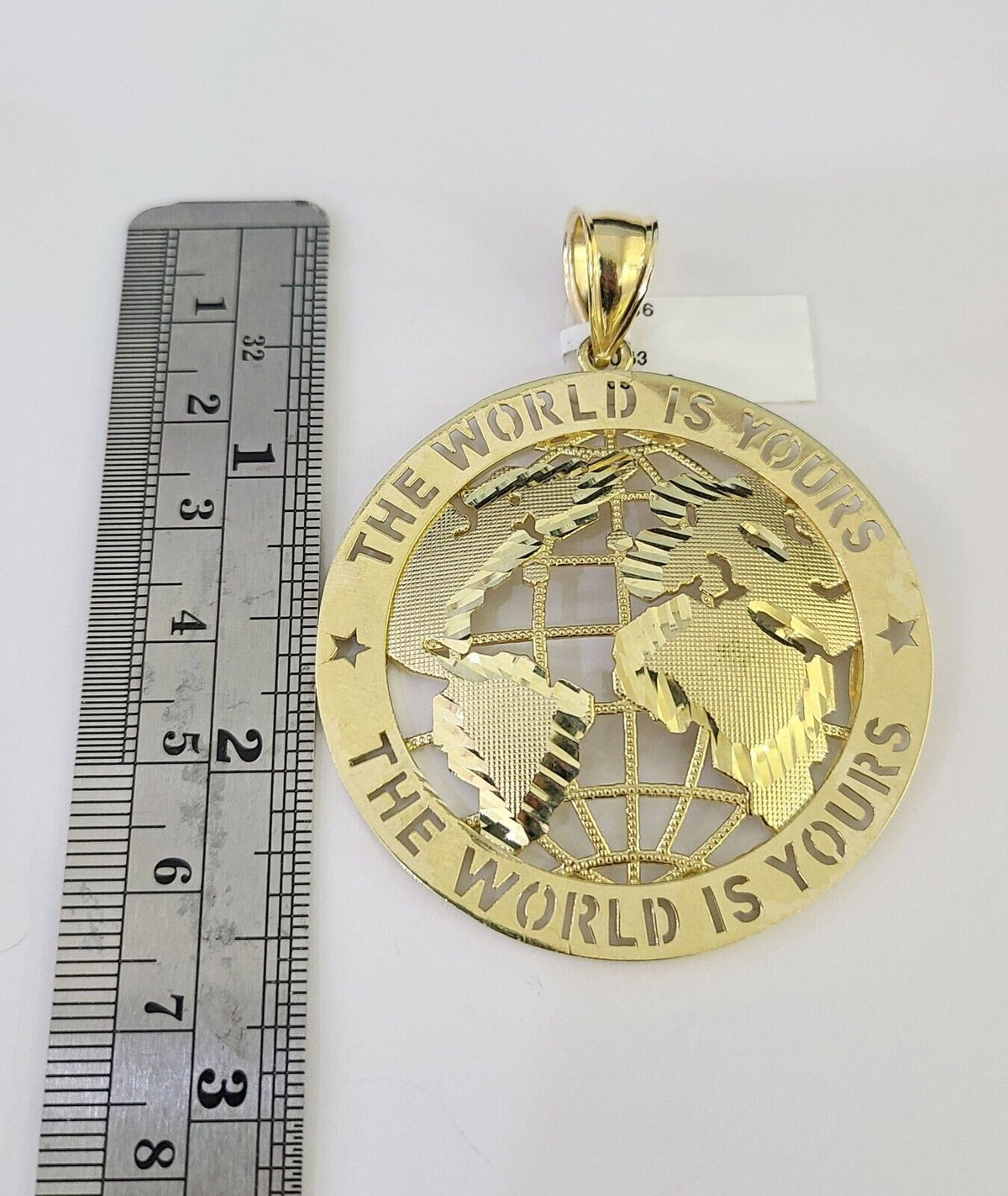 10K Franco Chain World is Yours Pendant Charm Necklace 20"-26" 5mm Gold SET