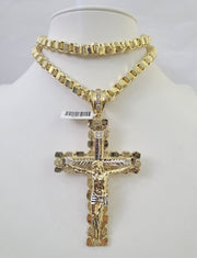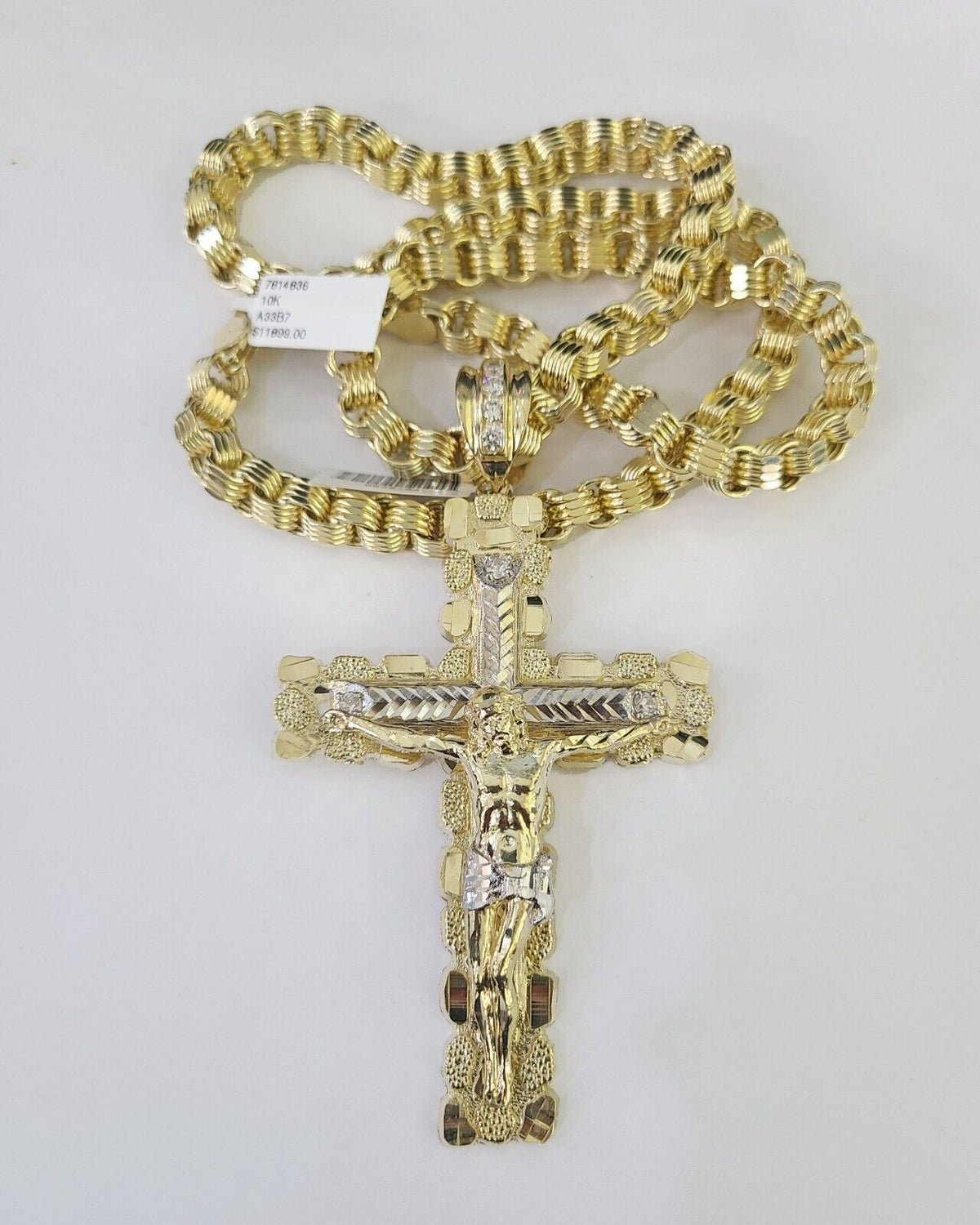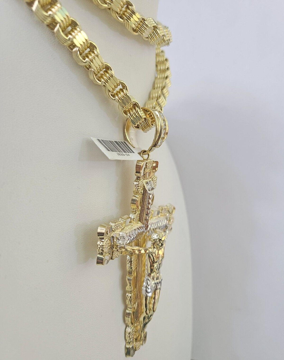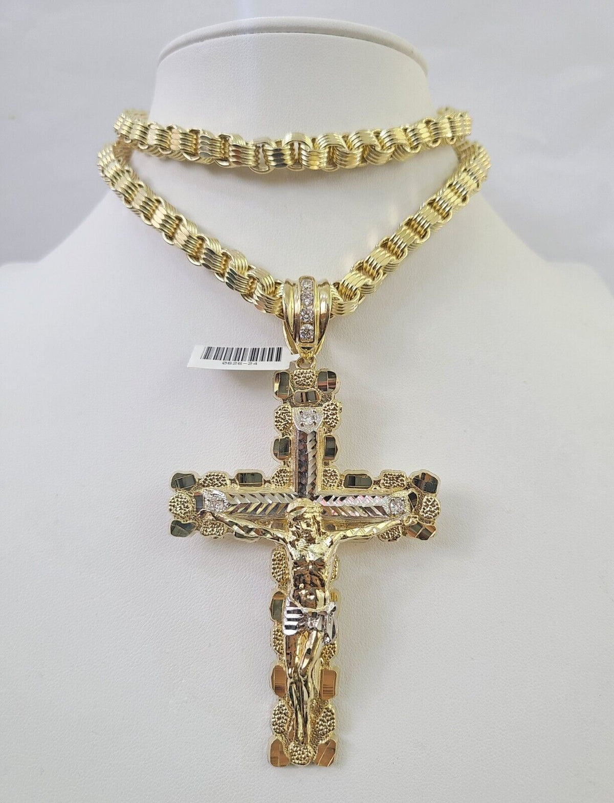 10k Gold Byzantine Necklace Jesus Cross Charm Pendant 20"-30" 8mm REAL SET Chain