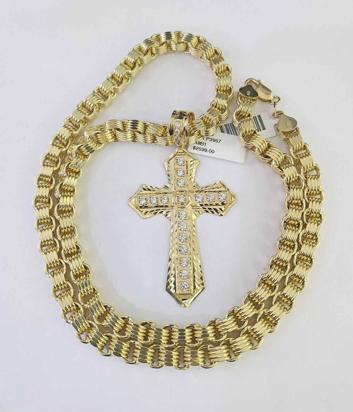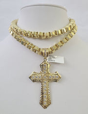 10k Gold Byzantine Necklace Jesus Cross Charm Pendant 20"-30" 8mm REAL SET Chain - 20" with Charm
