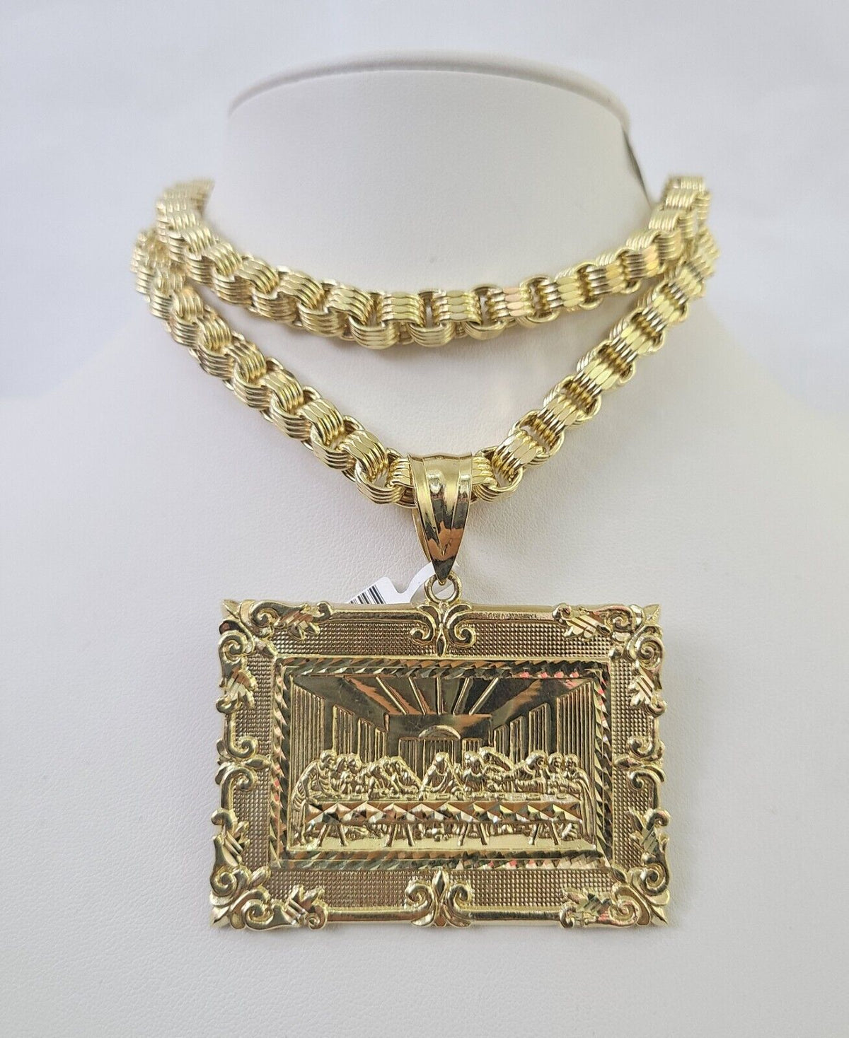 10k Gold Byzantine Necklace Last Supper Charm Pendant 20"-30" 8mm REAL SET Chain - 20" with Charm