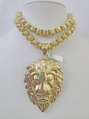10k Gold Byzantine Necklace Lion Charm 20-30 inches 9mm REAL Yellow SET Chain - 20" with Charm