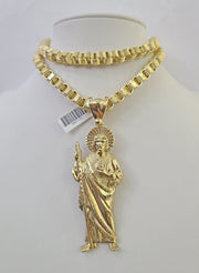 10k Gold Byzantine Necklace Saint Jude Charm Pendant 20"-30" 8mm SET Chain - 20" with Charm