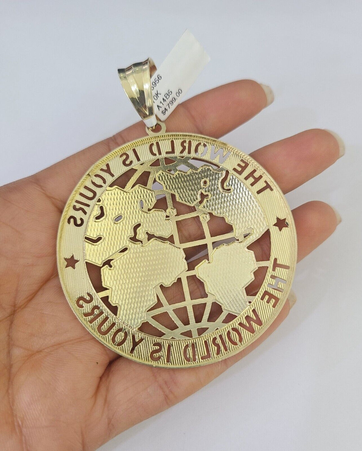 10k Gold Byzantine Necklace World is Yours Charm 20-30 inches 9mm REAL SET Chain - 20" with Charm