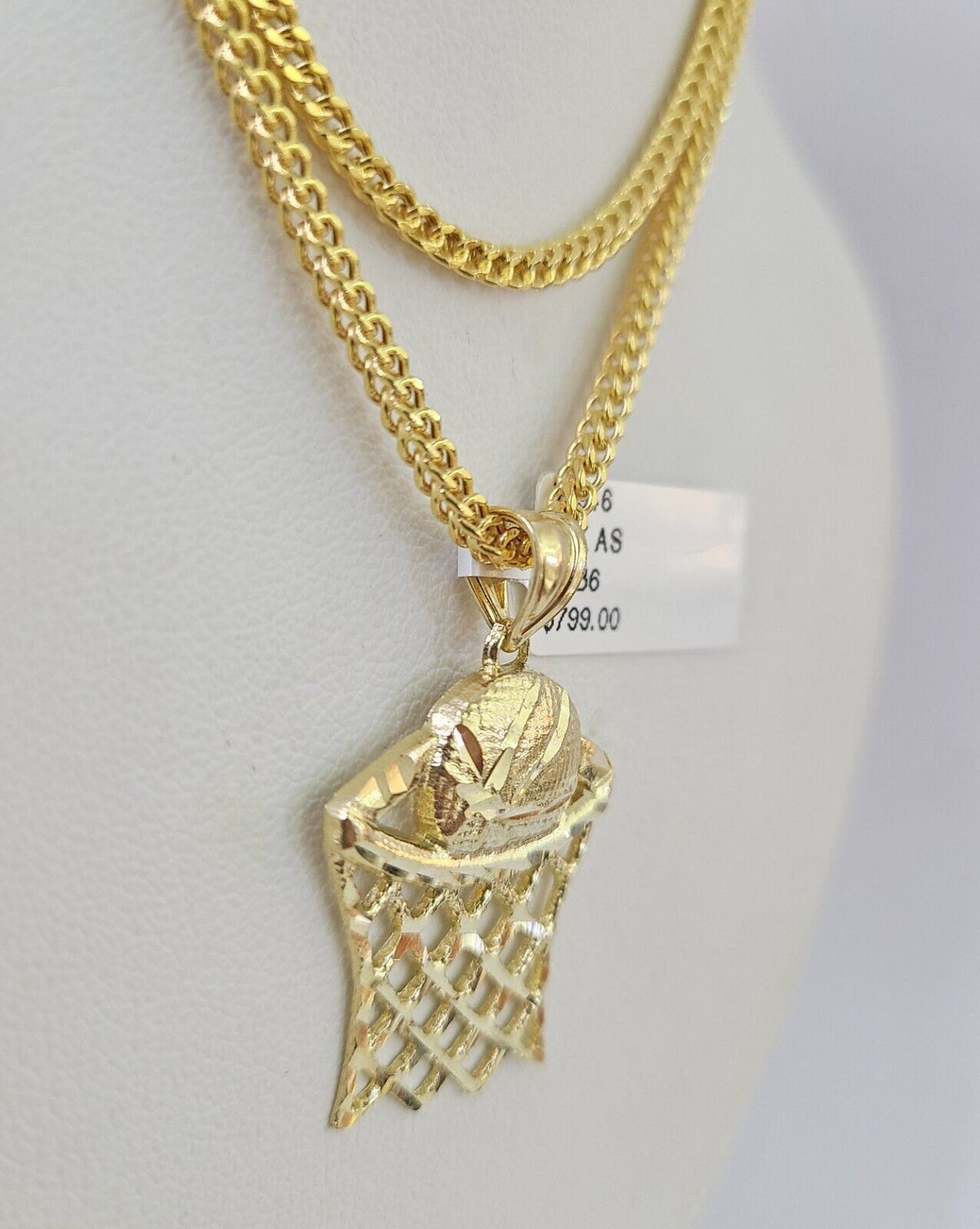 10K Gold Franco Chain Basket Ball Charm Pendant 20-26 inches 2.5mm REAL Yellow