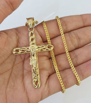 10K Gold Franco Chain Jesus Cross Charm Pendant 20-26 inches 2.5mm REAL Yellow