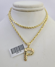 10k Gold Initial P Charm Rope Chain 16"-26" 2.5mm SET Necklace Alphabet Pendant