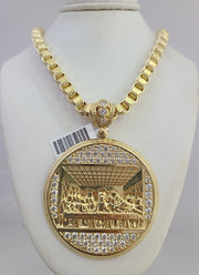 10k Gold Necklace Byzantine Last Supper Pendant Charm 20"-30" SET 7mm Chain