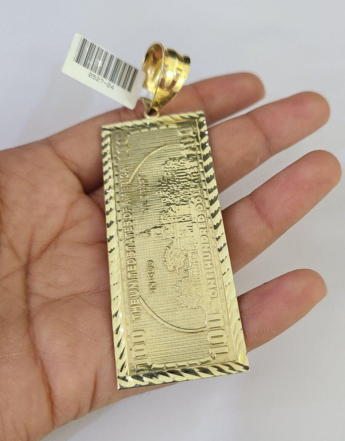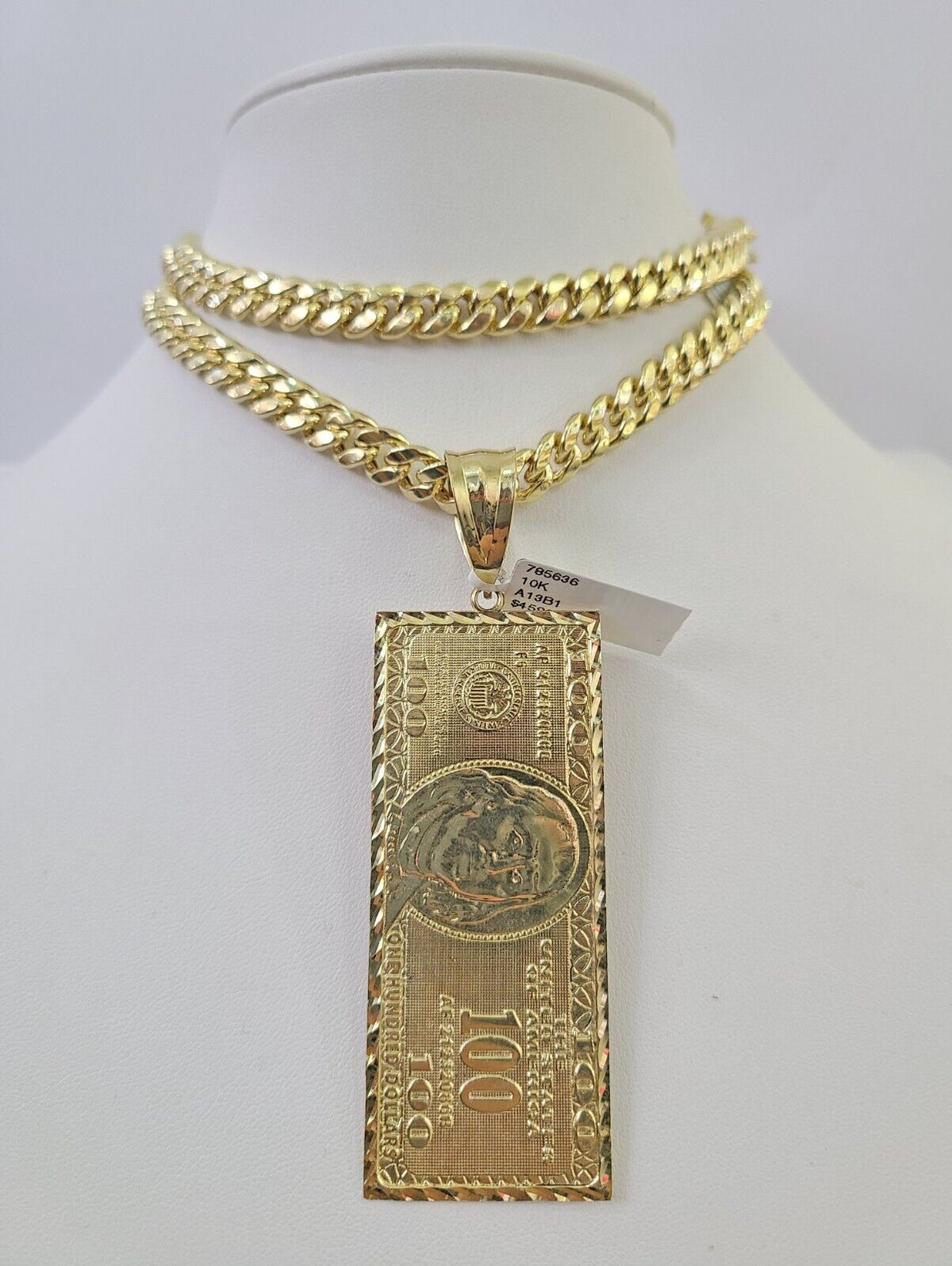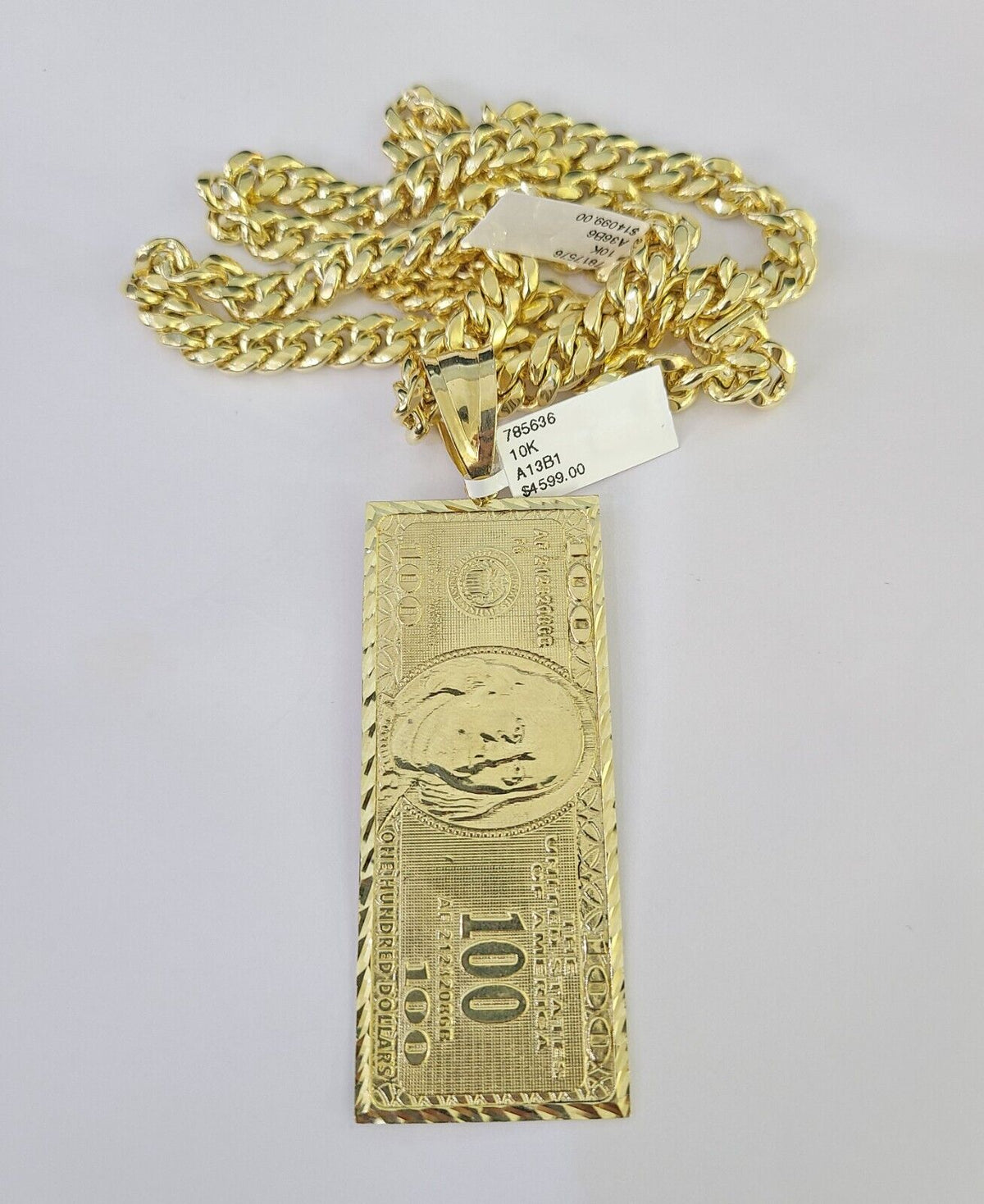 10K Miami Cuban Link Chain 100 Dollar Bill Pendent Charm 8mm 20"-30" Necklace - 20" with Charm