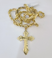 10k Milano Rope Chain Jesus Cross Charm Necklace end SET 5mm 26" Pendant