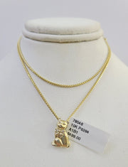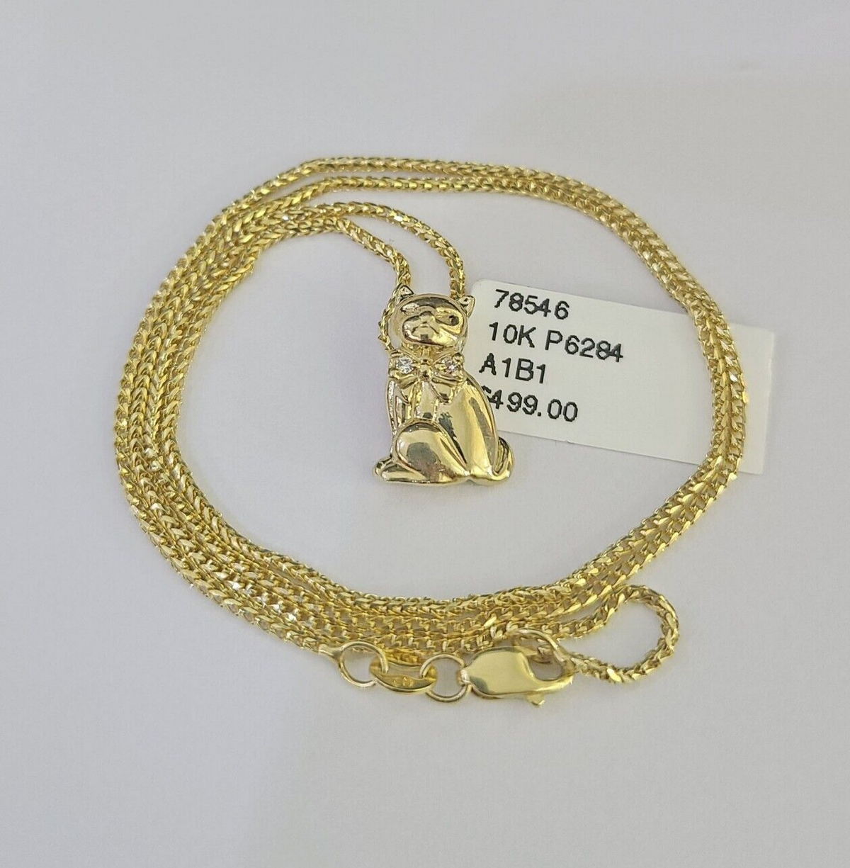 10K Solid Franco Chain Dog Pendant Charm Necklace 16"-22" 1mm Gold Ladies - 18" chain with charm