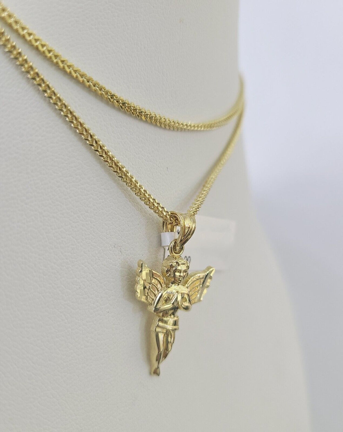 10K Solid Franco Chain Praying Angel Pendant Charm Necklace 18"-24" 1m – Goldenlinq index