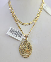 10k Solid Gold Cuban Curb Chain Crown Pendant 2.5mm 18"-26" SET Necklace