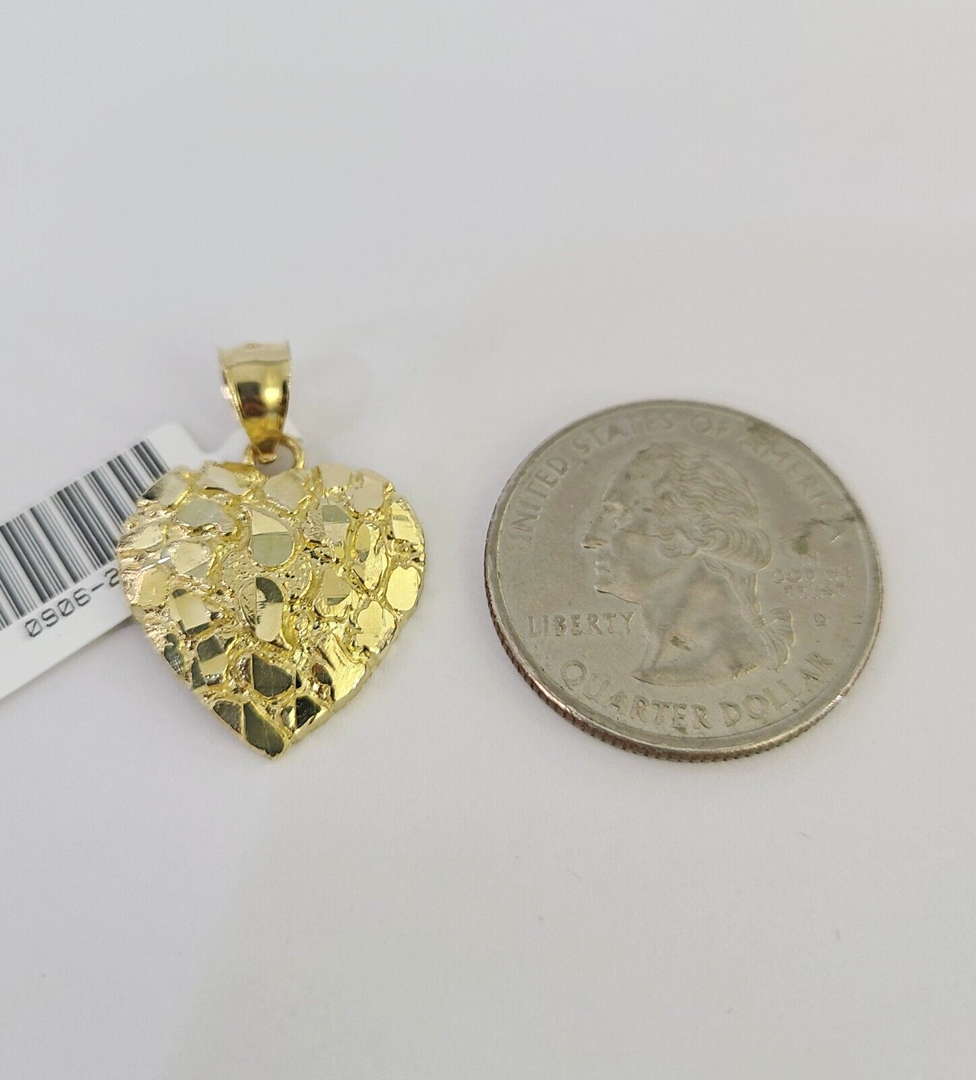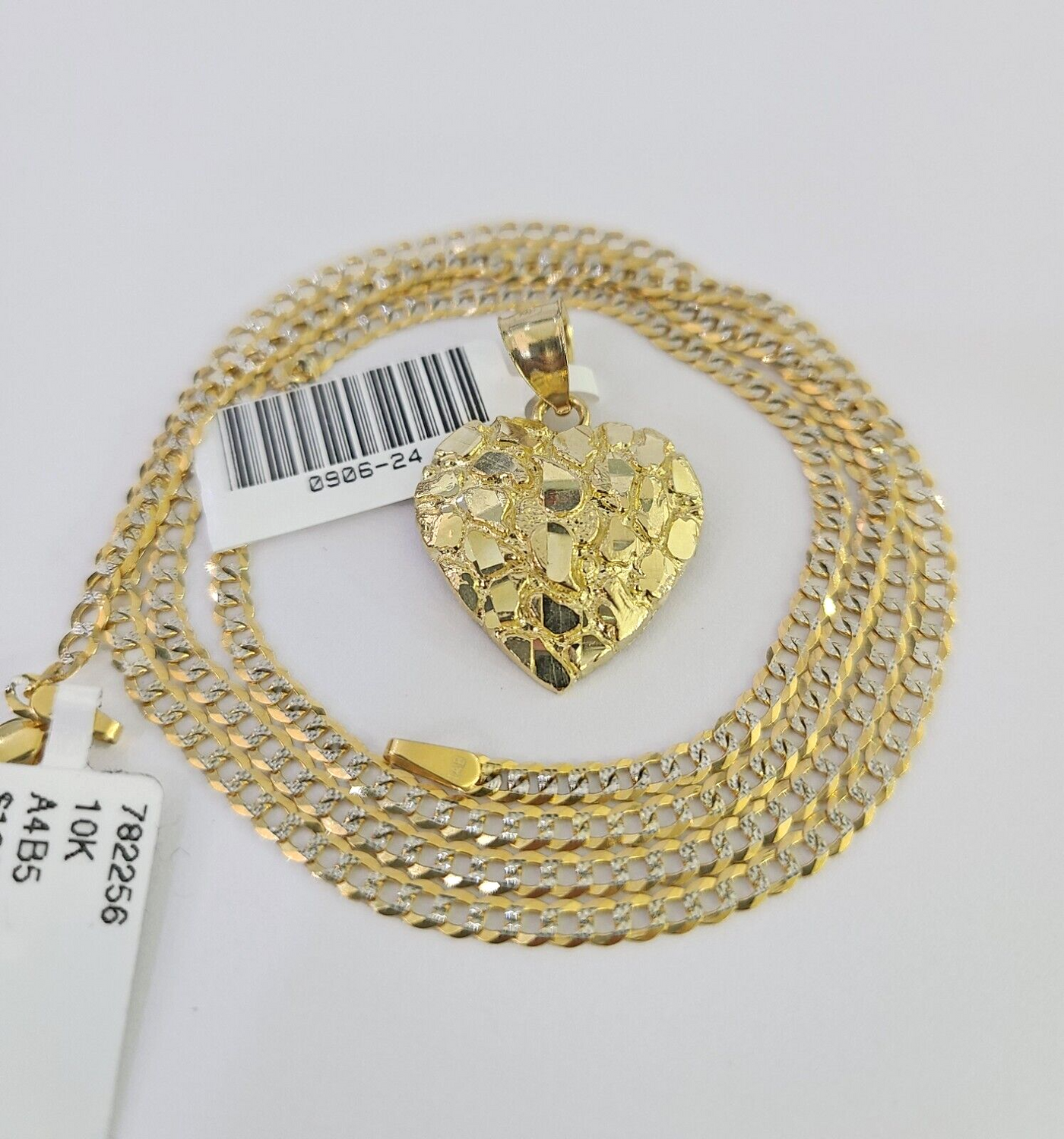 10k Solid Gold Cuban Curb Chain Hearts Pendant 2mm 18"-24" SET Necklace - 20" Chain with Charm