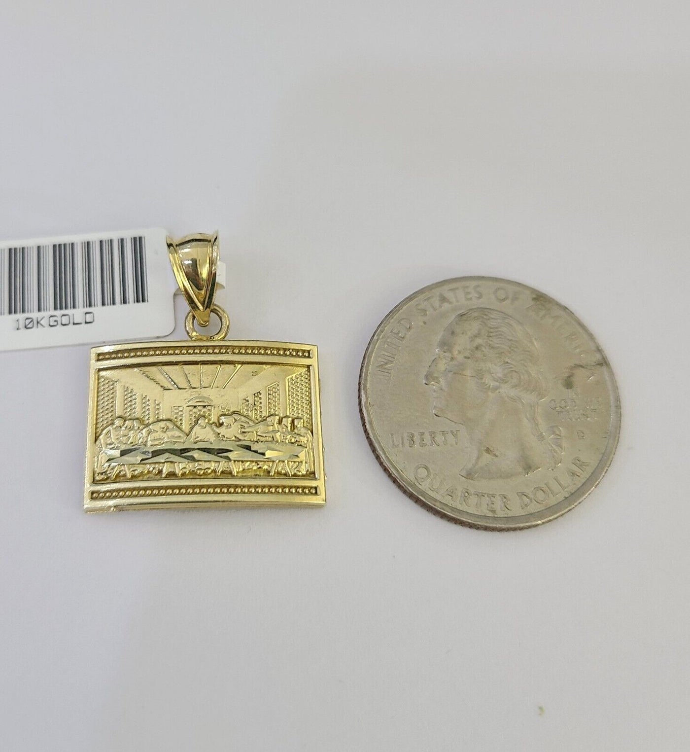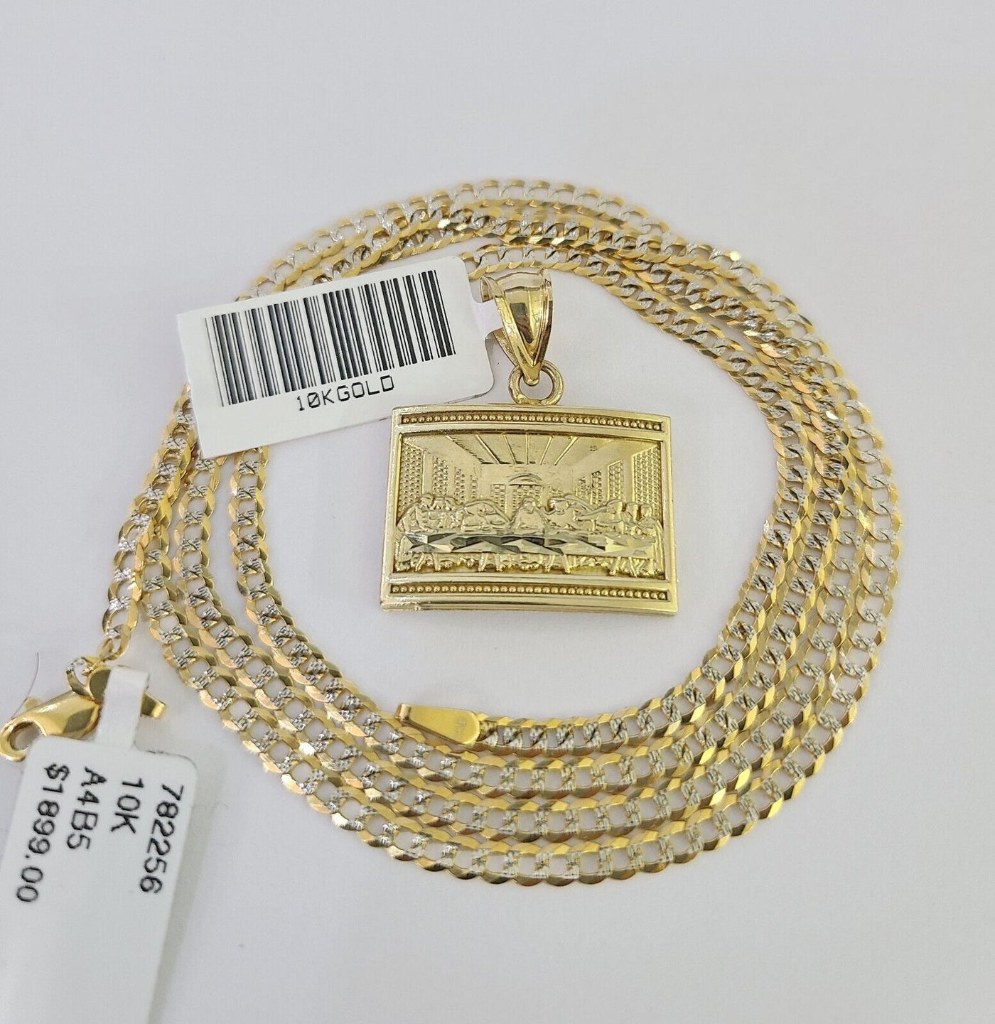 10k Solid Gold Cuban Curb Chain Last Supper Pendant 2mm 18"-24" SET Necklace - 20" Chain with Charm
